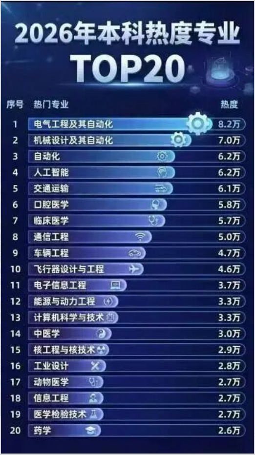电气挤下计算机登顶!2026专业热度榜藏着中国经济新密码