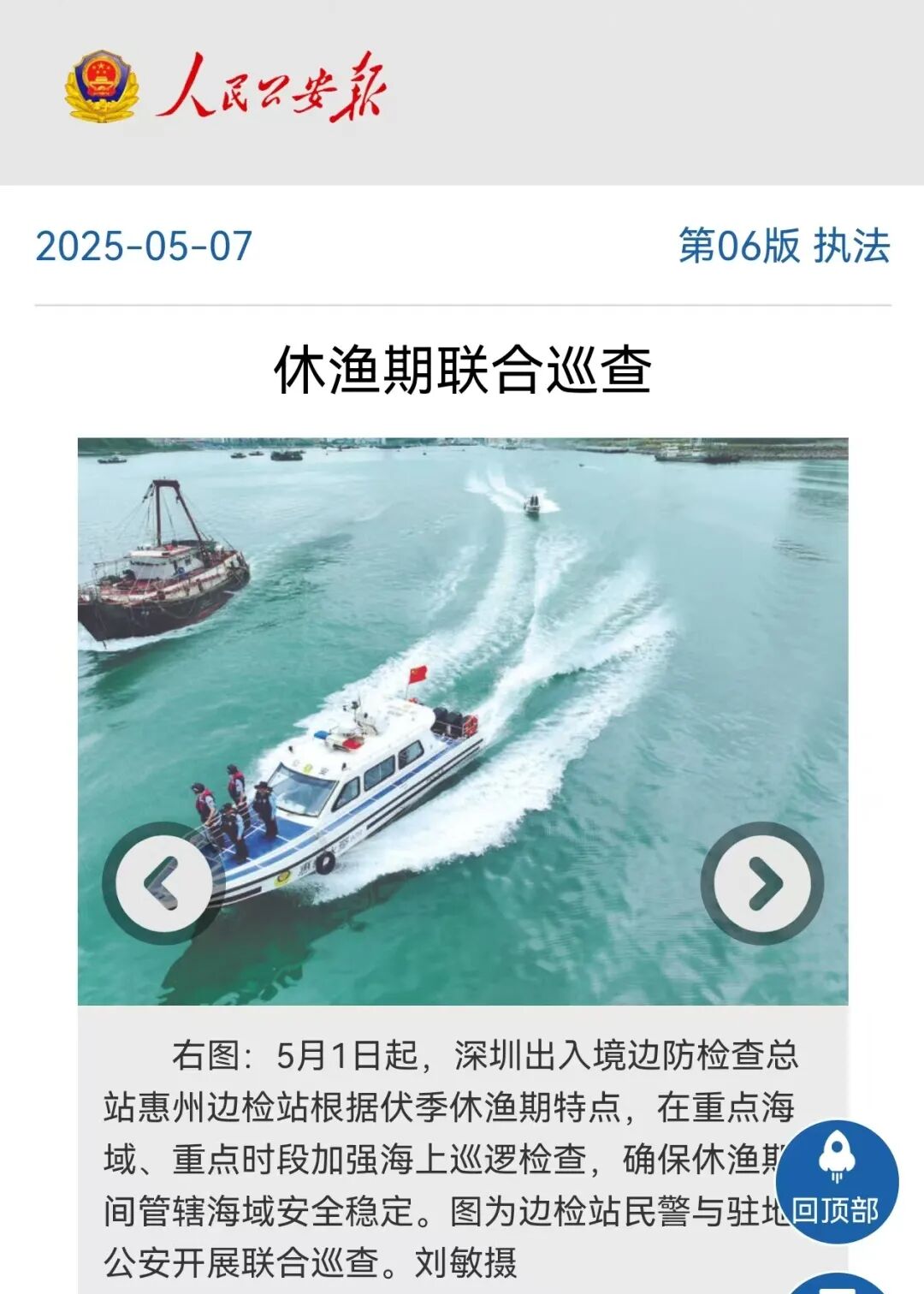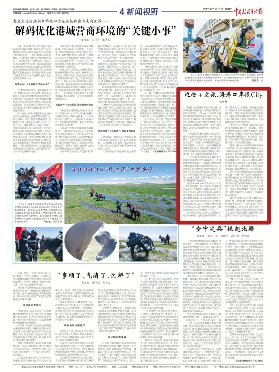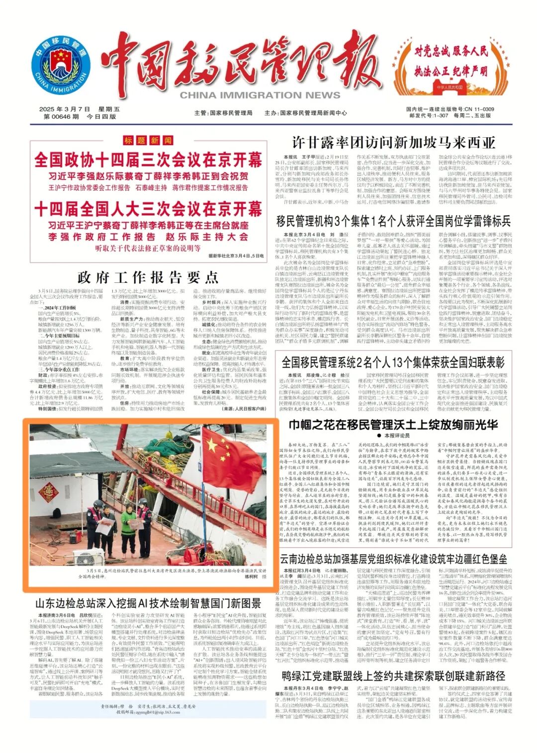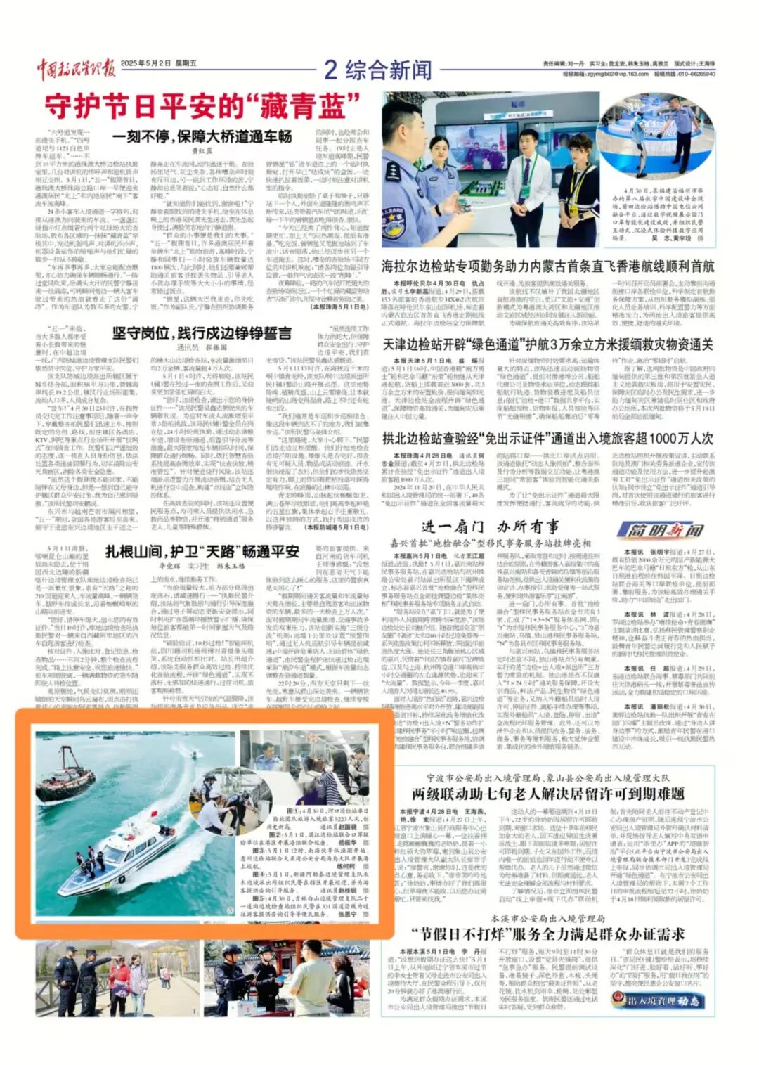 围绕迎战台风 “桦加沙” ,全力护航海港口岸人员、船舶及设施安全稳定,相关抗台防汛亮点工作与实战成效,被中央广播电视总台新闻频道、中国移民管理报头版刊发。
