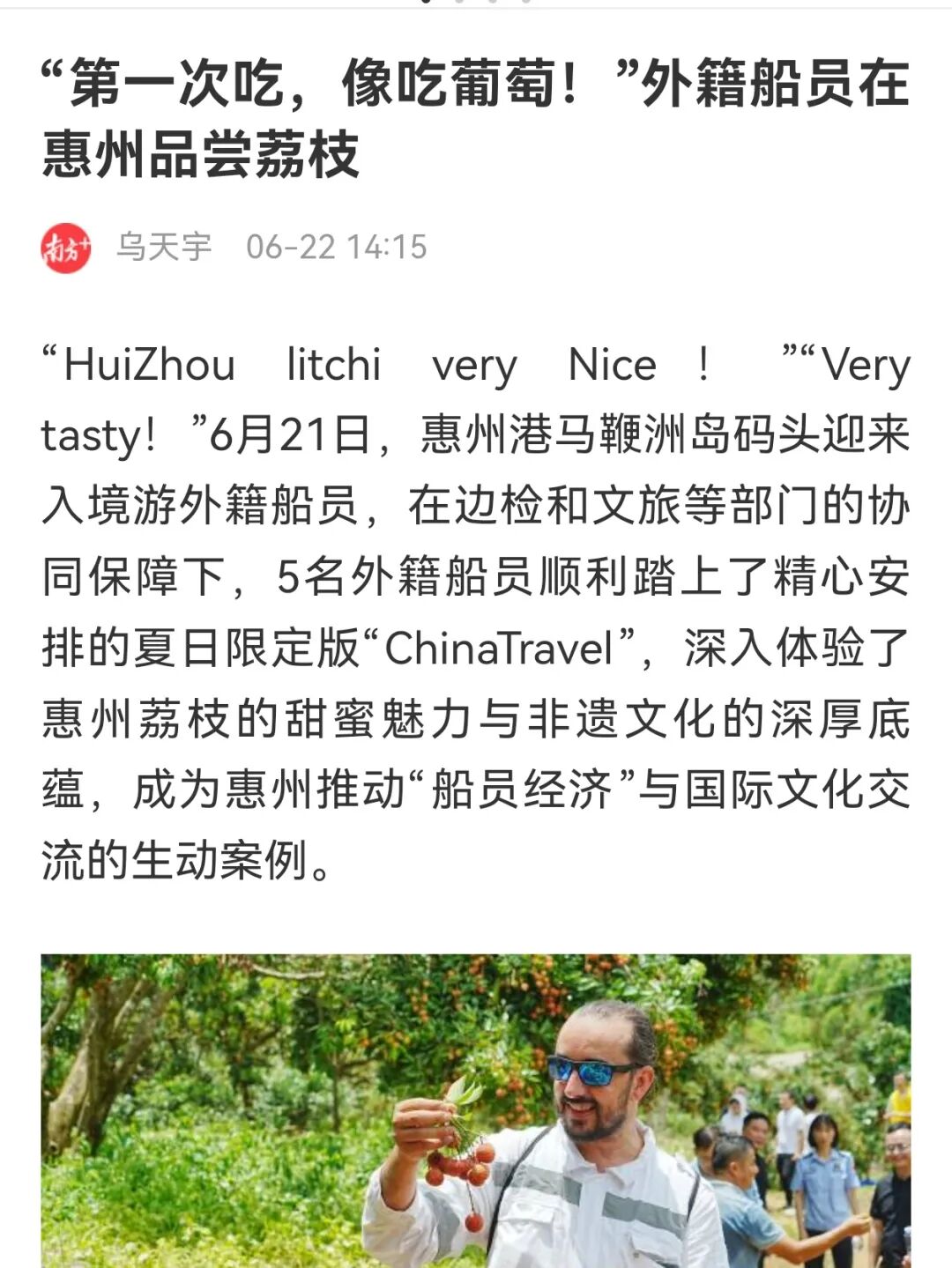 聚焦港口经济高质量发展主线,联合地方文旅部门组织开展“港口+文旅”外籍船员上岸感受HuiZhou Travel!主题宣传活动,以跨界联动激活海港口岸多元价值,引发20余家媒体广泛关注,同步撰写《边检+文旅,海港口岸很city》深度稿件,全景呈现边检机关助力港口经济提质增效的创新举措与实践成效,被中国移民管理报专题刊发。