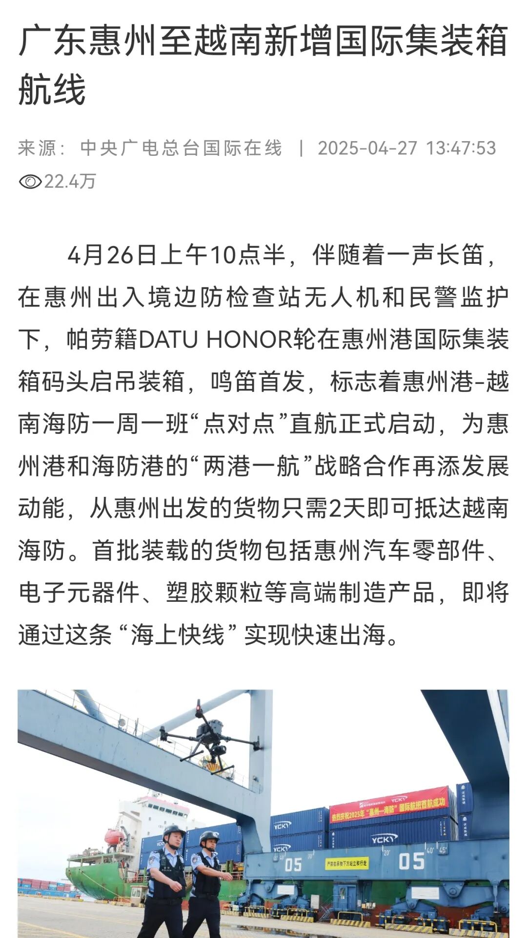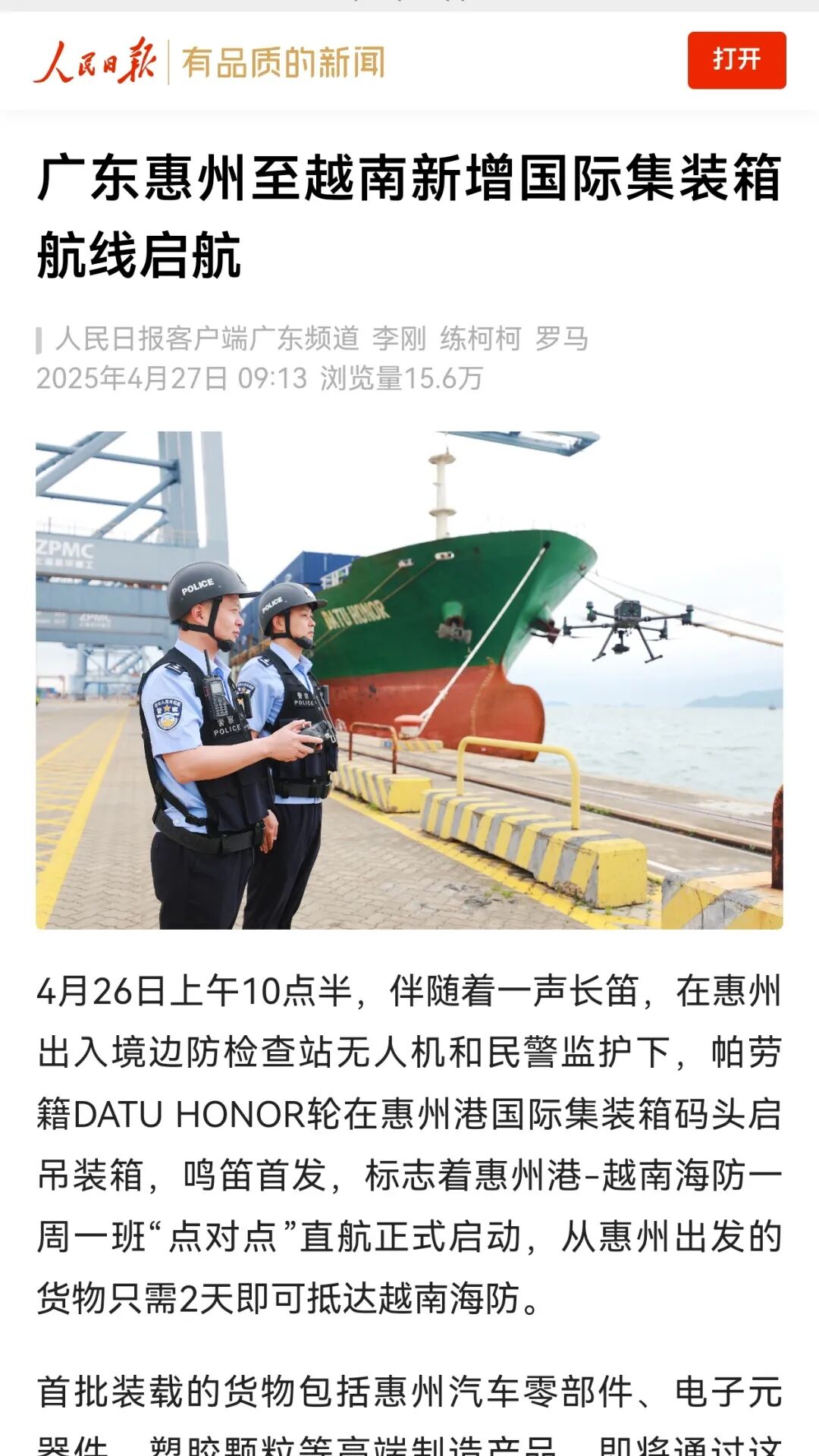紧密结合保障新航线等中心主业,撰写《首航启程!惠州边检站科技护航东南亚新航线》消息文章,被人民日报客户端、中新网、中国日报网、中央广电总台国际在线、中国移民管理报、南方日报、羊城晚报等媒体刊发,全网阅读量突破50万