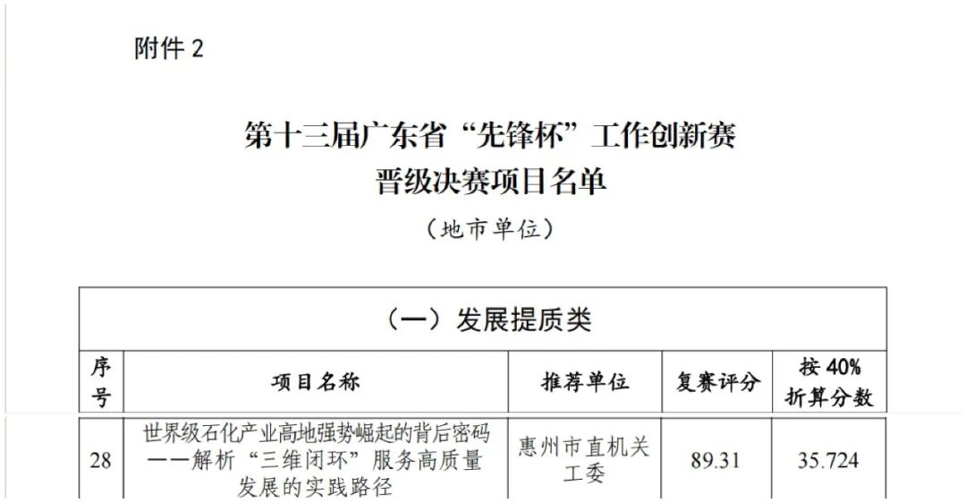 锚定惠州建设世界级石化产业高地目标,坚持党建引领,构建机制、服务、安全“三大闭环”,有力护航湾区石化高质量发展,相关案例晋级广东省“先锋杯”决赛
