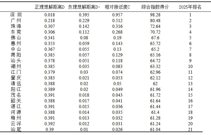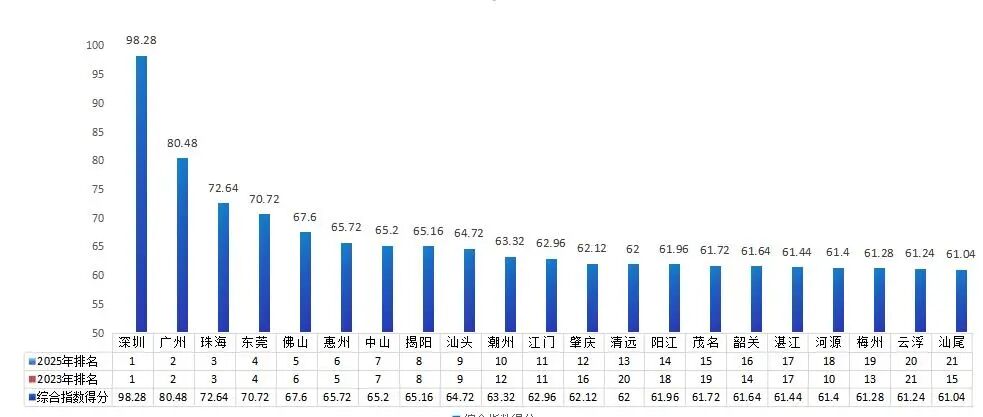 注:2024年综合评估是基于2023年广东省统计年鉴数据,2025年是基于2025年广东省统计年鉴数据,因此文中对应的是2023年排名和2025年排名。