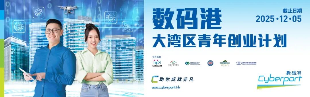 「数码港大湾区青年创业计划2025」最终申请通道将于12月5日晚上11:59分关闭,即刻锁定你的梦想席位。