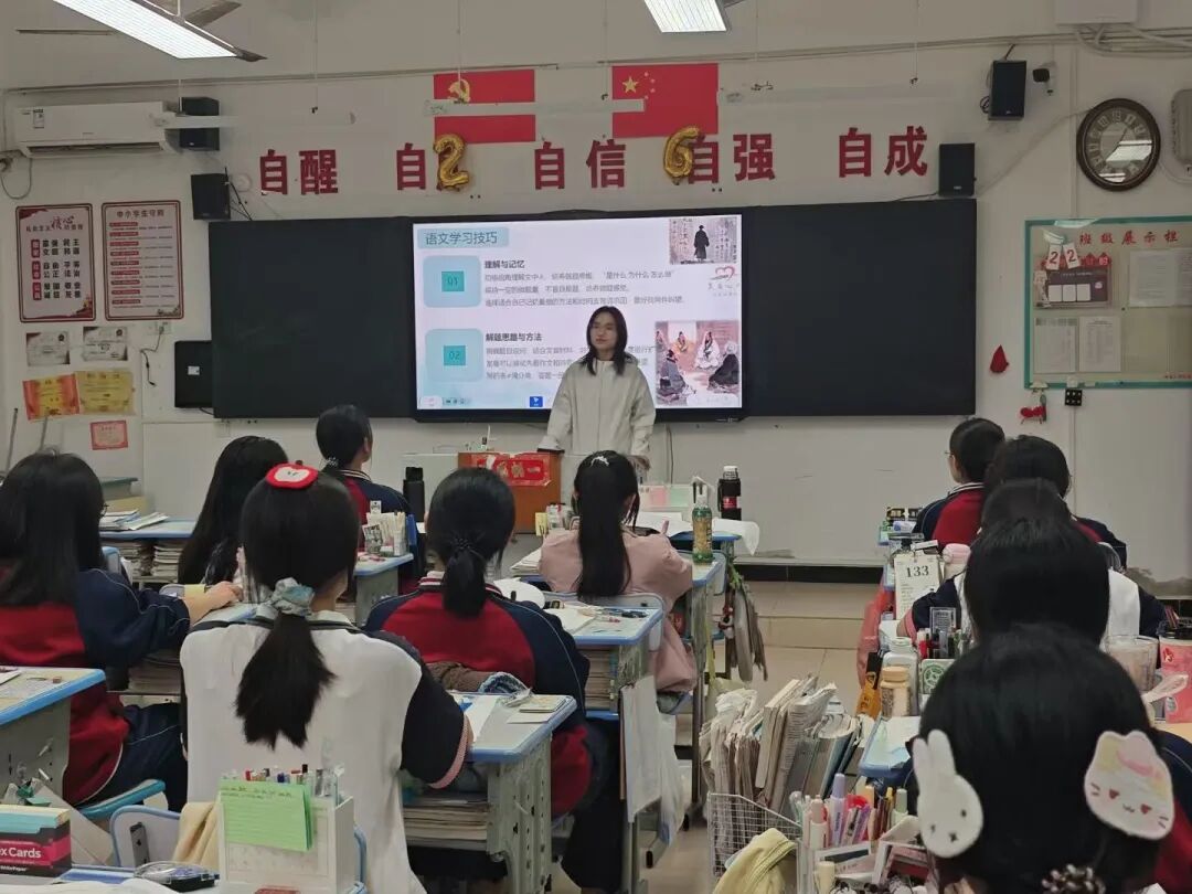 随后,进入学习经验分享环节。志愿者们褪去青涩,以“过来人”的身份,结合自身高三备考经历,分享实打实的干货技巧。他们围绕各科复习规划、错题整理方法、高频考点突破等核心问题,逐一拆解自己的备考心得——有人分享了时间管理技巧,有人讲解了语文作文、英语阅读的提分技巧,也有人分享了自己平衡弱科与优势科目的实用方法。没有空洞的口号,只有真诚的叮嘱,志愿者们结合自己的亲身经历,分享了科学高效的备考思路。