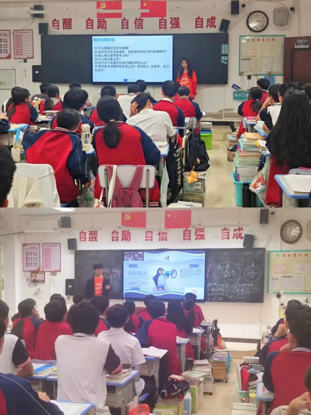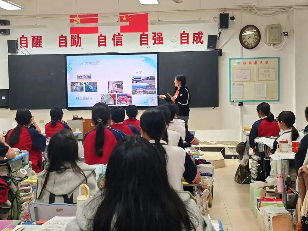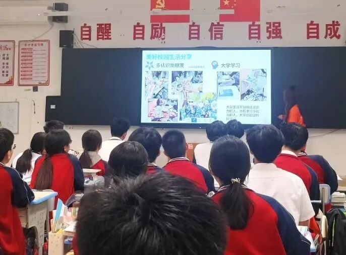 志愿者们带领高三学子“走进”多彩的大学生活。他们结合自己的校园生活,从专业学习、社团活动、实践经历等多个角度,讲述了大学生活的精彩与多元——有图书馆里的潜心钻研,有社团活动中的并肩协作,也有社会实践中的成长蜕变。志愿者们还展示了自己大学的校园风景、学习日常,让身处紧张备考中的学子们,真切感受到了大学生活的多彩与美好,也更加坚定了自己的备考目标,为枯燥的备考生活注入了新的动力。