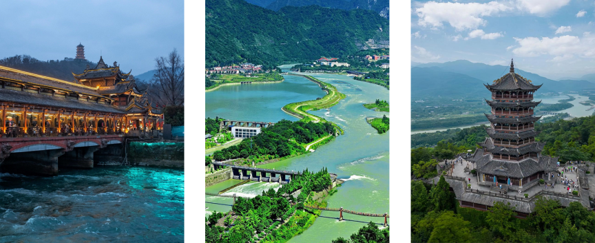 16. 都江堰,这座全世界迄今唯一仍在使用的古代水利工程,是人类与自然和谐共生最早的成功实践之一。