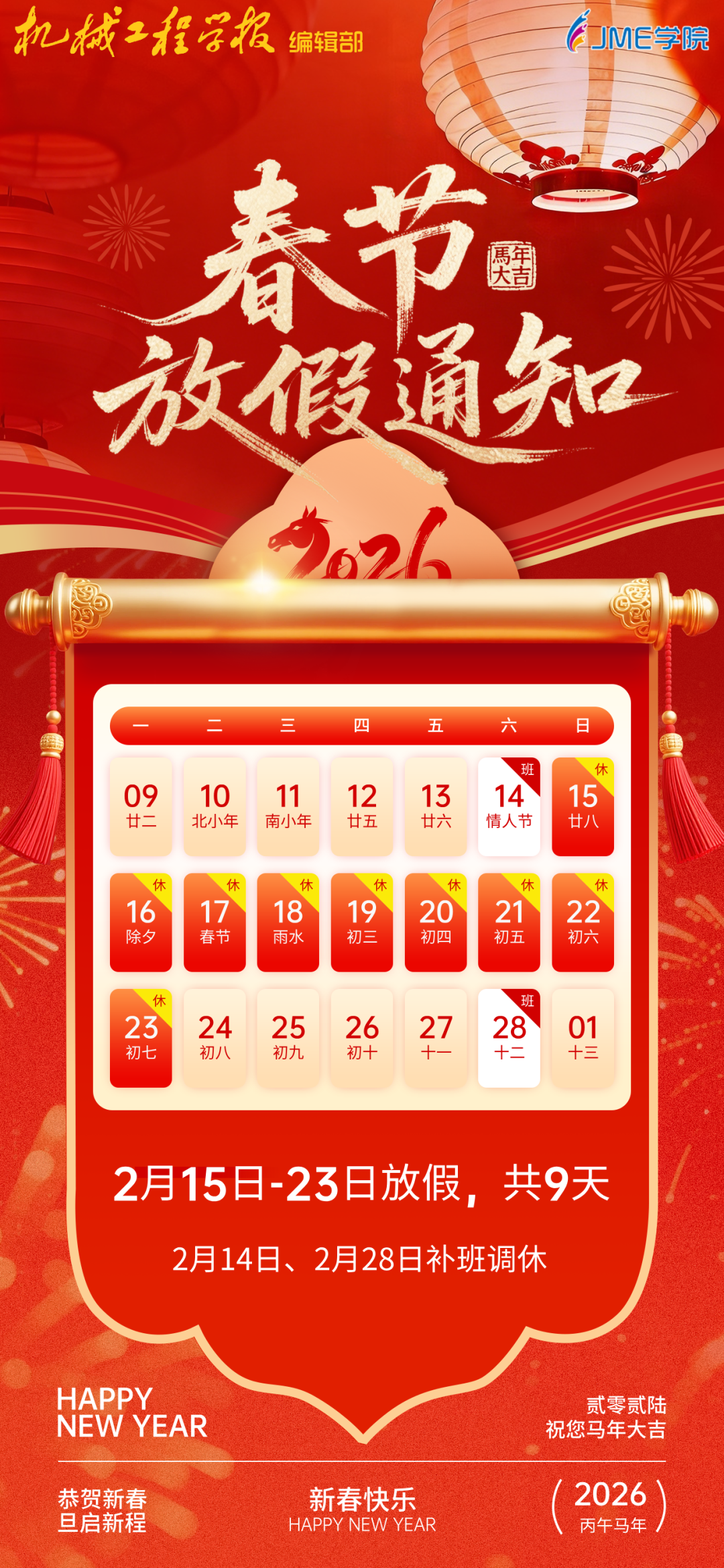 根据本单位2026年春节放假安排,编辑部将于2026年2月15日-2月23日放假。放假期间,服务器正常开放,您可以通过网络进行在线投稿以及查询稿件。