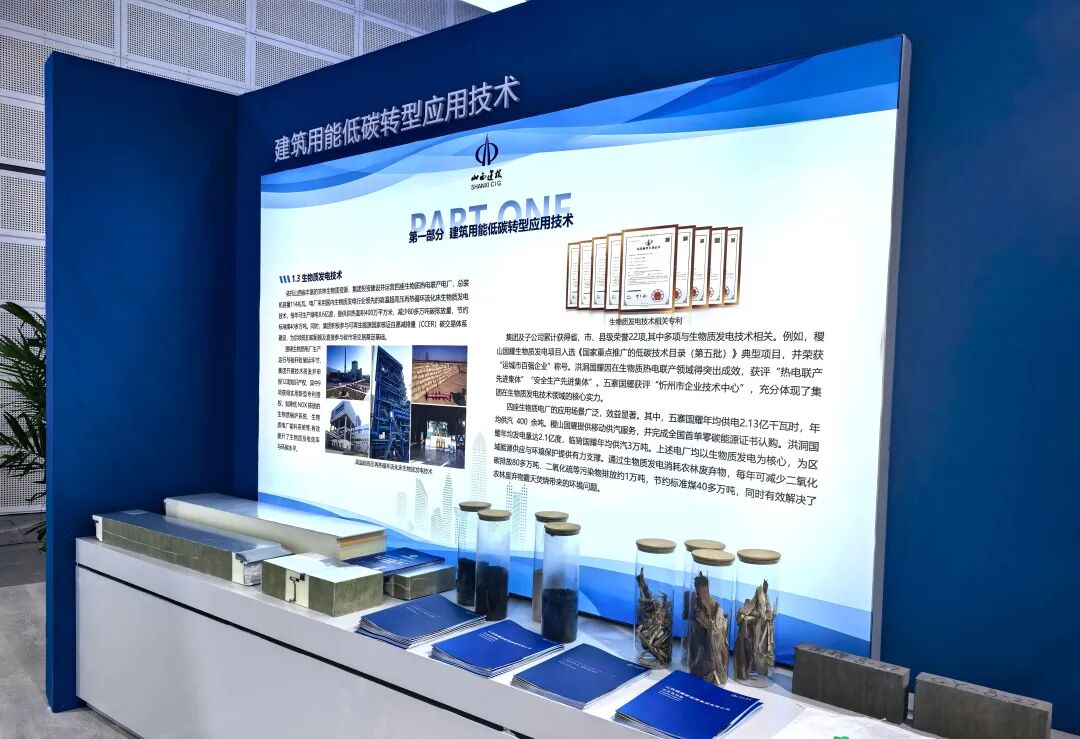 建筑用能低碳转型应用技术展区,呈现了太阳能光伏、地热能、生物质发电、生活垃圾焚烧发电等技术。