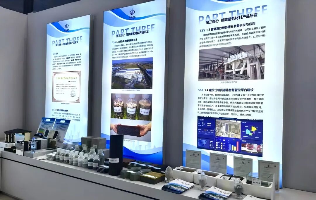 低碳建筑材料产品研发展区,展示了低碳建材领域的煤基固废高值化利用、绿色再生建材。