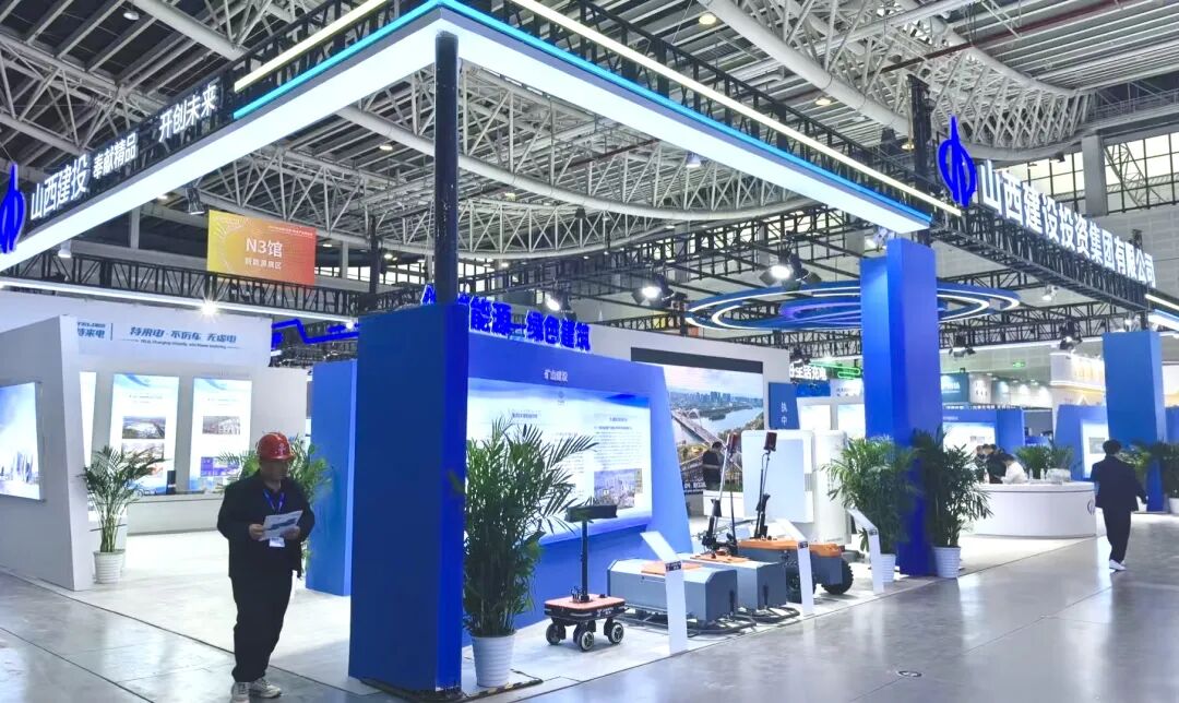 在主题形象展区,集团展示了山西・潇河新城在绿色建造与低碳运行方面的实践成果,以及零碳机场建设、绿色化工、固废综合利用等方面的突出成效。集团自主研发的石材砖铺贴、激光地面整平、履带地面抹平、四盘地面抹光、喷刮打磨一体、实测实量、消防值守等建筑机器人,也成为关注焦点,生动展示了智能建造与绿色施工的深度融合。