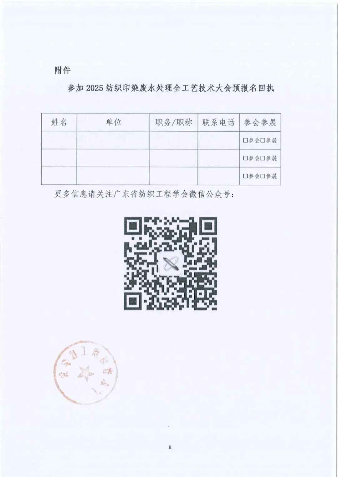 参加2025纺织印染废水处理全工艺技术大会预报名回执
