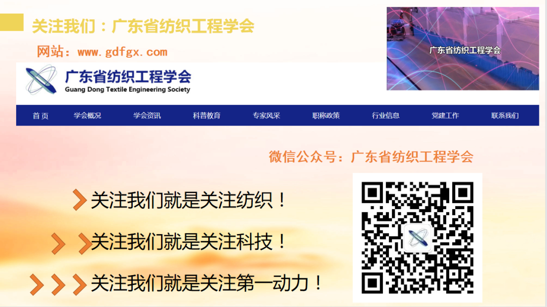 更多信息请关注广东省纺织工程学会微信公众号: