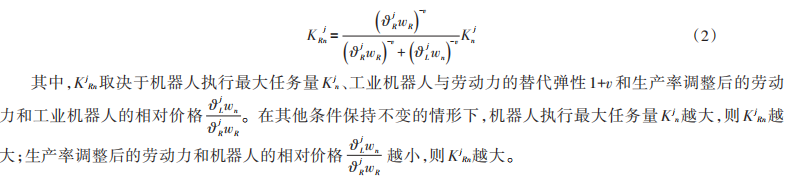 在可自动化任务区间内,机器人与劳动力根据相对成本与生产率进行分工。机器人实际完成的任务总量 KnRj由下式决定: