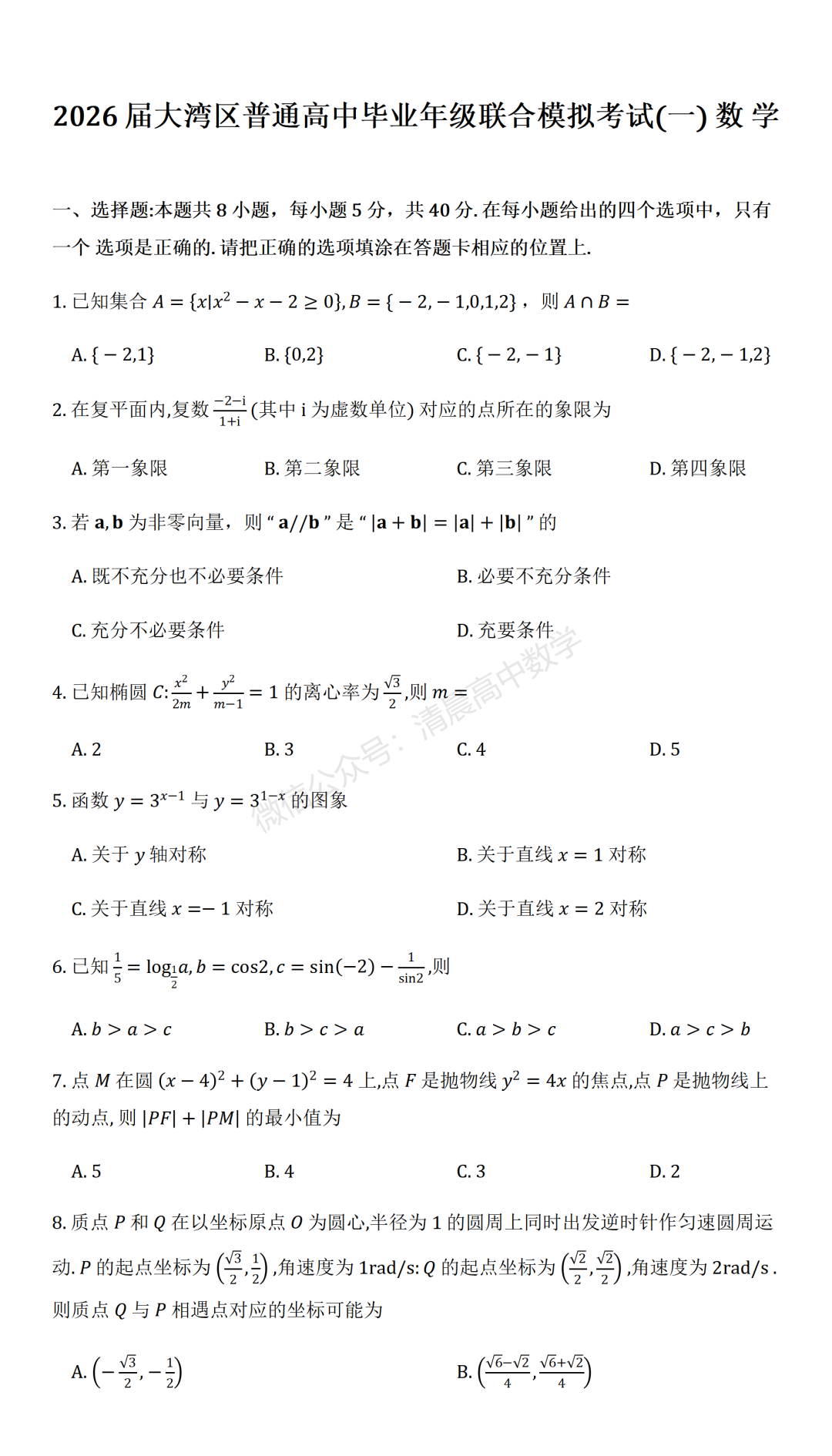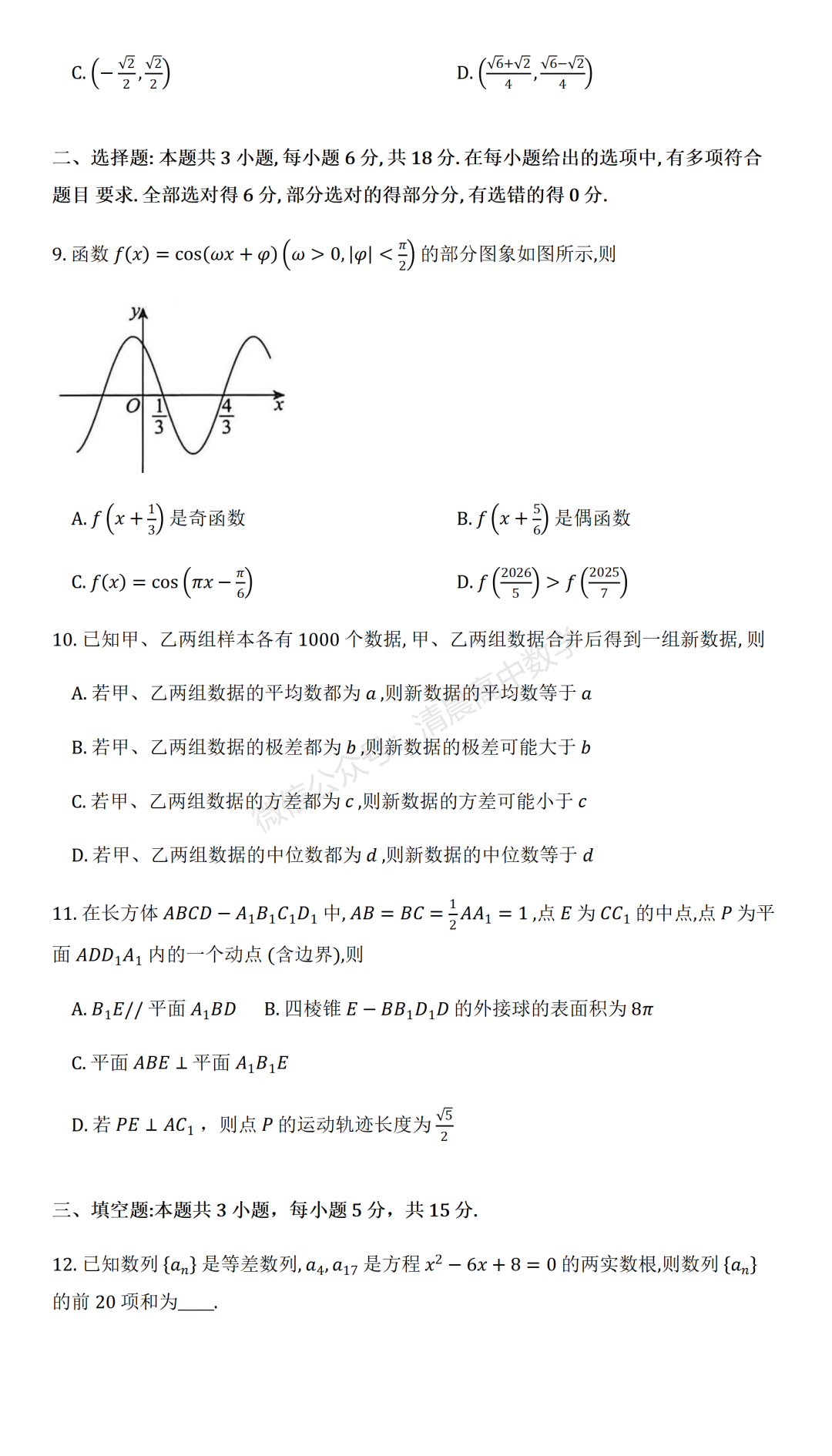 无水印电子版已上传至【26届高考数学会员群】