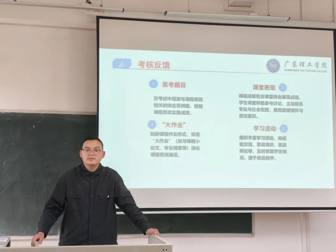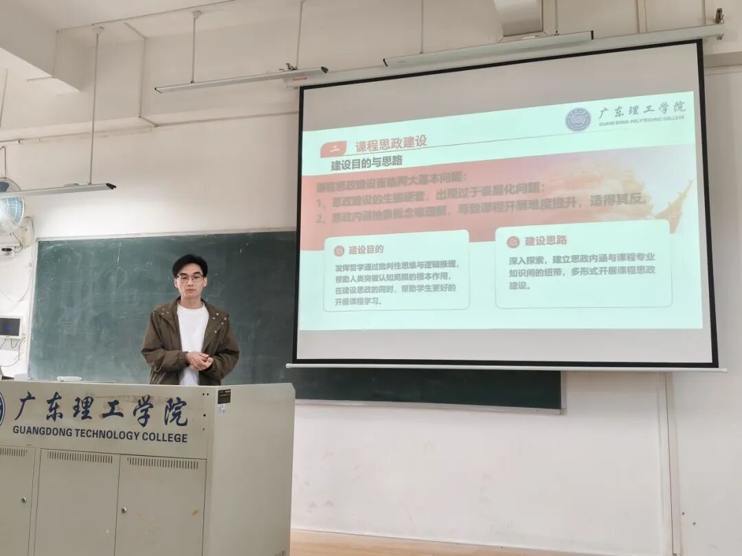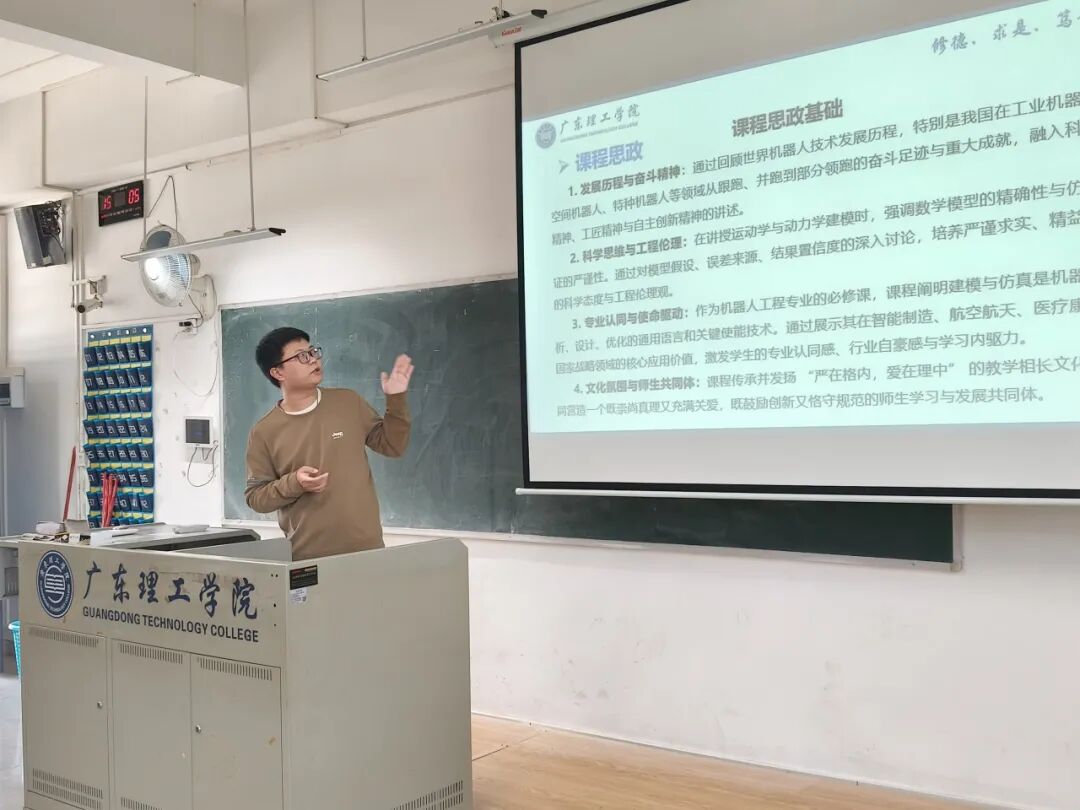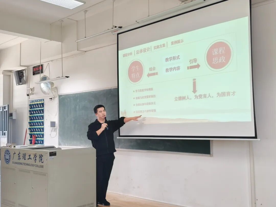 为深入贯彻党的二十大精神,落实立德树人根本任务,全面推进课程思政建设,提升教师思政教学能力,12月9日下午14:00,广东理工学院智能制造学院 2025年课程思政教学比赛在9501教室顺利举行。经各教研室筛选赛严格选拔,11名优秀教师同台竞技,展现了学院教师扎实的教学功底与鲜明的思政育人特色。