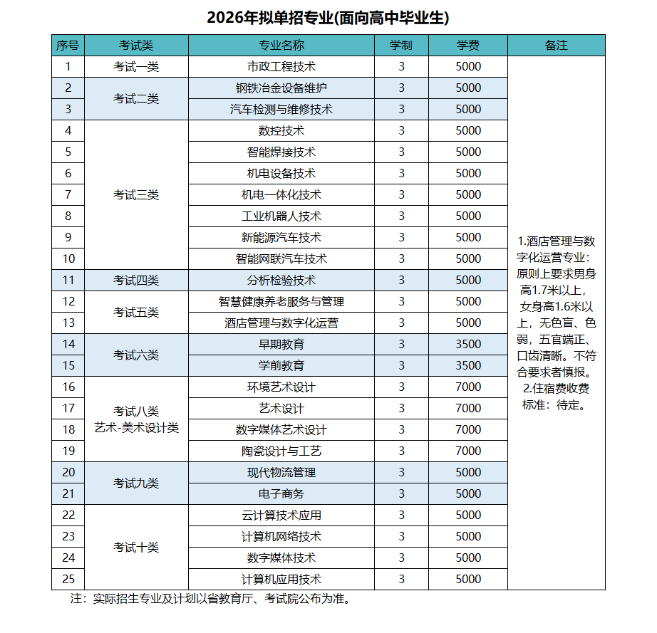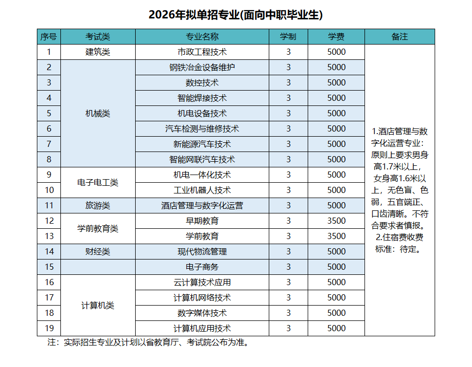 单招专业