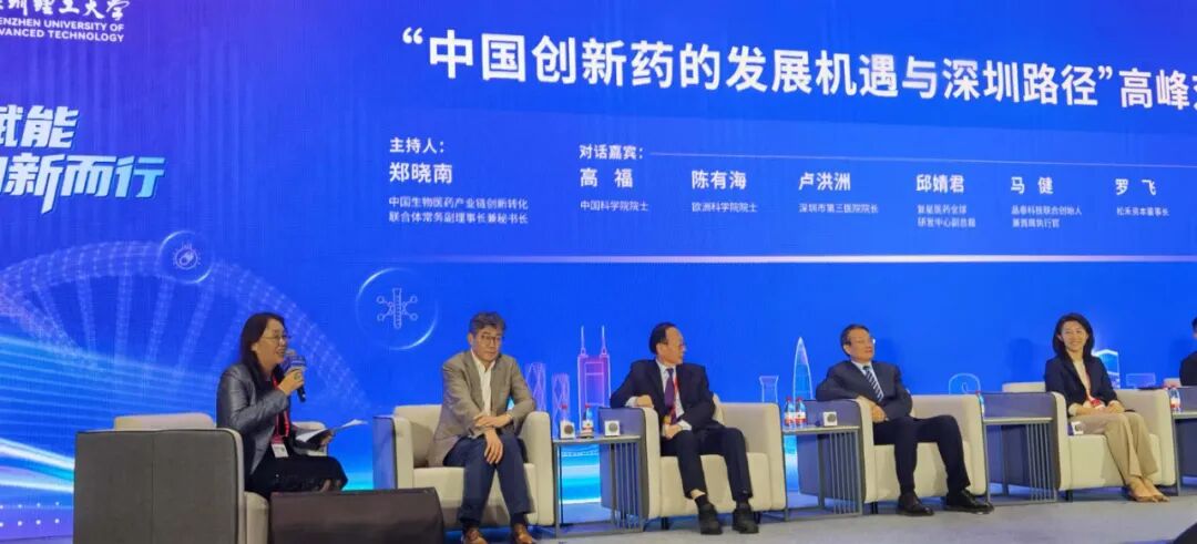 在高峰对话环节,全球顶尖科学家、产业领袖及学术领军人物共同展开了深度探讨。CBIITA联合体常务副理事长兼秘书长郑晓南主持了以“中国创新药的发展机遇与深圳路径”为主题的圆桌对话,中国科学院院士高福,欧洲科学院院士、深圳理工大学药学院院长、CBIITA联合体核酸药物专委会主委陈有海,深圳市第三医院院长卢洪洲,复星医药全球研发中心副总裁邱婧君,晶泰科技联合创始人兼首席执行官、CBIITA联合体人工智能大数据专委会主委马健,松禾资本董事长罗飞,中国外商投资协会跨国药企委员会原执行总裁、CBIITA联合体人才与组织专委会主委康韦就药物研发项目、人才培养模式、初创医药公司融资困难原因、药企出海主要挑战等议题深入交流,深度探讨推动生物医药产业创新发展的新路径。
