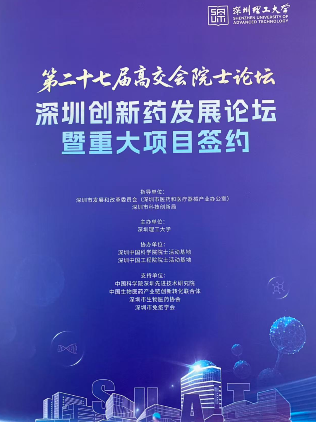 11月15日,第二十七届中国国际高新技术成果交易会(以下简称“高交会”)院士论坛——深圳创新药发展论坛暨重大项目签约活动在深圳国际会展中心18号馆207会议厅落下帷幕。