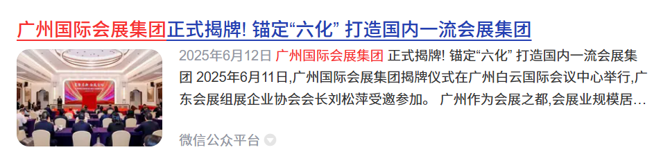 广州:广州国际会展集团(2025年),整合全市优质会展资源,聚焦“会展+产业”,助力广州打造国际消费中心城市;中国对外贸易中心集团(1988年),商务部直属企业,运营广交会展馆和国家会展中心(天津)。