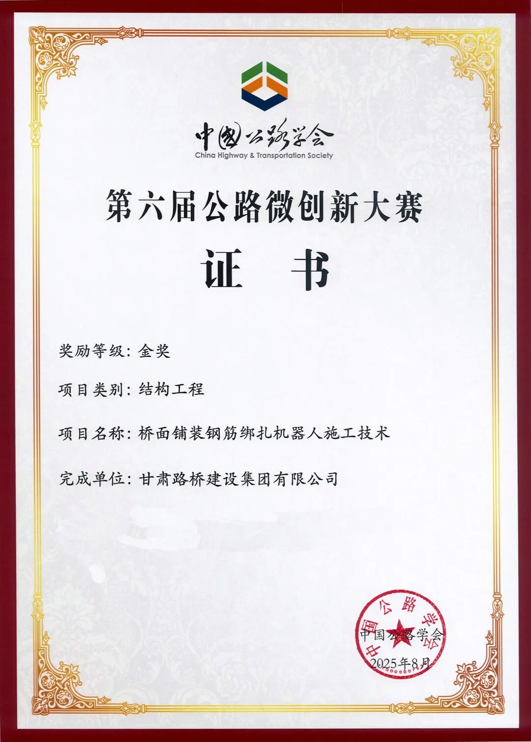 参加第八届路基路面工程教学研讨会暨第四届道路工程材料教学研讨会并作专题交流研究院始终将体制机制创新作为激发内生动力的关键。修订完善了《甘肃路桥建设集团有限公司科技成果产业化奖励办法》,对“低收缩UHPC超高性能混凝土及衍生产品”等5项突出科技成果予以奖励,有效激发了研发团队的创新活力。同时,深入开展“公路交通科技成果应用评价体系研究”,构建涵盖技术成熟度、经济可行性、工程适用性及环境与社会效益的多维度成果转化评价体系,大力推动科研成果转化。依托《路桥智造》内刊,持续跟踪人工智能、新型材料、智能建造等前沿技术和科技政策动态,全年提供科技情报70余篇,为企业科研创新与战略布局提供导向。在科研项目申报与管理上,研究院主动作为,积极争取各类资金与政策支持。全年组织申报各级各类科研项目53项,立项科研项目19项,其中国家重点研发计划、省联合基金、省科协、兰州市科技局、省国资委、省交通运输厅等外部重大重点项目立项11项,路桥集团自立科技项目8项。通过科研项目的有效实施,持续激发科研人员创新潜能,助力技术成果向现实生产力转化,增强了企业可持续创新能力与市场核心竞争力。研究院加强项目过程管控,组织召开了3次科研项目调度会,顺利完成省科技厅重大专项、联合基金项目以及20余项企业自立项目的调度工作。并推动完成到期科研项目验收28项,集团自立科研项目结题超过90%。研究院坚持以科技创新引领产业创新,聚焦施工环节智能化升级,自主研发的多款智能装备成功投入工程应用,有力推动了施工现场向“绿色化、自动化、智能化”转型。水稳基层养生土工布铺卷机在武仙、康略路面项目中实现工程应用;桥面铺装钢筋绑扎机器人在水范项目测试应用,荣获第六届公路微创新大赛金奖、中国公路学会交通智能建造技术创新与应用大赛二等奖、2025公路交通智能装备技术创新大赛三等奖等三项大奖;双组分道路交通标线智能施化装备完成了样机研制和园区道路测试,并荣获国家级研究生创新大赛奖项两项;隧道打磨机器人集打磨与喷涂功能于一体,已在兰永临项目测试应用,能够显著提升模板处理效率与混凝土施工质量;标准化智慧梁场建设在太华四标、合赛高速建设了示范工程,有效促进了预制梁生产的规范化与智能化,并形成通用图集,拟在多个项目推广;细集料含泥量快速检测设备已在太华项目测试应用,进一步提升了材料检测的自动化与精准化水平。研究院以卓越组织与创新能力在第三届甘肃省企业科技创新大赛中得到高度认可,获评“优秀组织单位奖”,这是全省唯一企业单位获此荣誉。钢筋绑扎机器人在G109线水范项目桥面铺装中进行测试应用 积极践行可持续发展理念,研究院在绿色低碳技术研发与推广方面迈出坚实步伐,尤其在固废资源化利用领域取得实质性进展。推进煤基固废黄土改良材料在太华、华二、巴虎等多个公路建设项目完成试验段铺筑,实现初步规模化应用,总用量近14000吨,并发布地方标准《煤基工业固废改良公路黄土路床技术规范》(DB62/T 5074-2024)、《城镇道路用煤基工业固废固化黄土技术标准》(DB62/T 3313 -2025),验证了绿色技术带来的经济效益与环境效益。研究院还参与承担了国家重点研发计划“交通基础设施”重点专项的相关子课题,攻关多源固废协同处置与高性能化利用关键技术,为低碳长寿道路建设贡献“路桥智慧”。此外,“钻孔灌注桩废弃泥浆固液分离技术”研究取得成效,开发的新型复合絮凝剂可将泥渣含水率有效降至30%左右,助力项目绿色施工与生态环境保护。发布地方标准《煤基工业固废改良公路黄土路床技术规范》《城镇道路用煤基工业固废固化黄土技术标准》研究院高度重视产学研用深度融合,年内组织多场技术交流活动,与中科院兰化所、兰州大学、兰州交通大学、重庆茂桥科技有限公司、兰石研究院等知名高校、科研机构及企业开展了深度交流,围绕集料智能检测、沥青指标智能检测、智能装备联合开发、知识产权预审等多个方向进行了探讨,为后续进一步对接与合作奠定了良好基础。通过实地调研中建八局、上海路桥等行业先进单位的智慧梁场与智能化生产线,深入考察学习国内智能建造前沿技术,形成高质量考察报告,并组织专题技术交流会,成功协助阿若项目引进智慧梁场钢筋智能加工生产线及施工装备远程智能操控技术,为项目高效、智能化施工提供了切实可行的解决方案。在第十四届中国创新创业大赛中发布技术需求,成功签订产学研合作协议2项。通过开放协同汇聚创新资源,有效推动了技术、资源与需求的高效对接,积蓄了未来发展新动能。在第三届甘肃省企业科技创新大赛中获“优秀组织单位奖”踏上新征程,甘肃路桥绿色智慧建造研究院将积极响应国家培育新质生产力的战略导向,进一步强化技术创新与产业协同创新,继续以“智能建造”“绿色低碳”为核心引擎,以更加昂扬的斗志、更加扎实的举措,持续深耕公路、桥梁、隧道等施工场景,加速将科研成果转化为现实生产力,推动公路交通智能建造行稳致远,为公路交通建设高质量发展提供强劲的科技支撑!