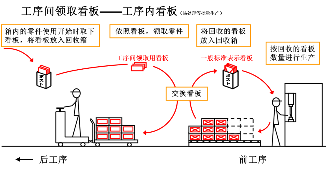 a)看板: 最经典的拉动信号工具。可以是实体卡片、电子看板或容器信号。当线边物料消耗到触发点时,看板被送回仓库或上游工序,作为生产和配送的指令。