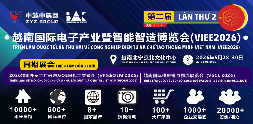 2026第二届越南国际电子产业暨智能制造博览会(VIEE2026)将于2026年5月28日至30日在越南北宁市京北文化中心盛大启幕。这不仅是一场展会,更是您低成本、高效率切入越南供应链核心圈的绝佳跳板!