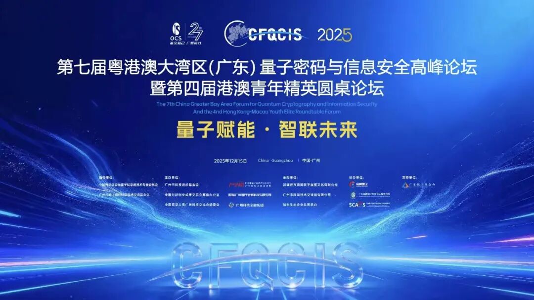 12月15日,第七届粤港澳大湾区(广东)量子密码与信息安全高峰论坛暨第四届港澳青年精英圆桌论坛(CFQCIS 2025)在广州举行。