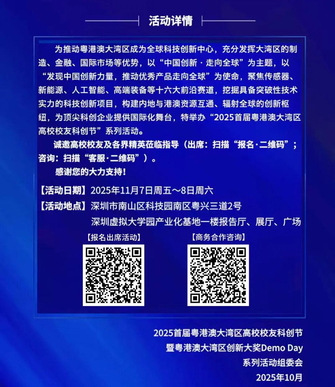 活动报名 | 2025粤港澳大湾区高校校友科创节暨粤港澳大湾区创新大奖Demo Day