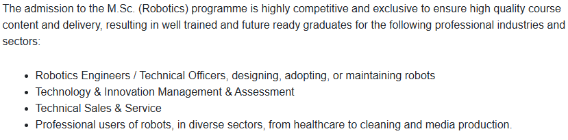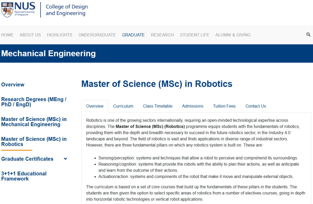 课程建立在一套核心课程的基础上,这些课程为学生建立了这些支柱的基础。然后,学生们可以从一系列选修课程中选择机器人技术的特定领域,深入研究水平机器人技术或垂直机器人应用。