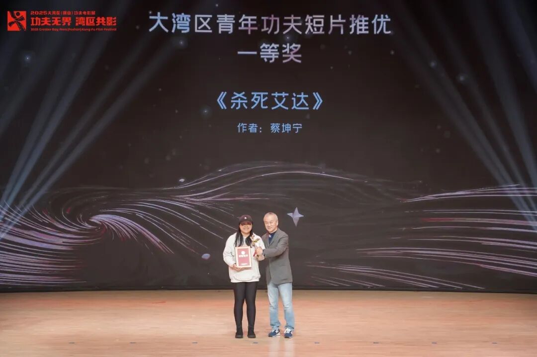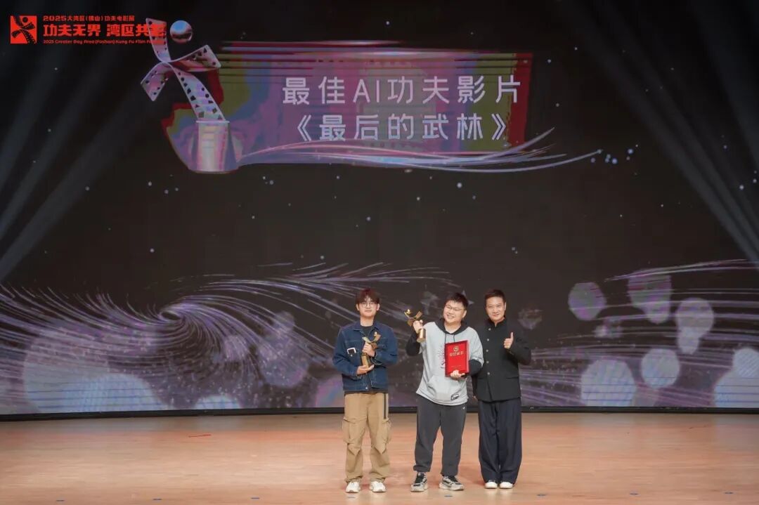 本届电影展以“功夫无界,湾区共影”为主题,吸引了全国192部AI功夫短片及76部青年功夫短片参与角逐。经过由洪金宝、陈德森、钱嘉乐、魏君子、谢苗等功夫电影界“大咖”组成的“全明星评审团”的严格评判,两大奖项现场揭晓: