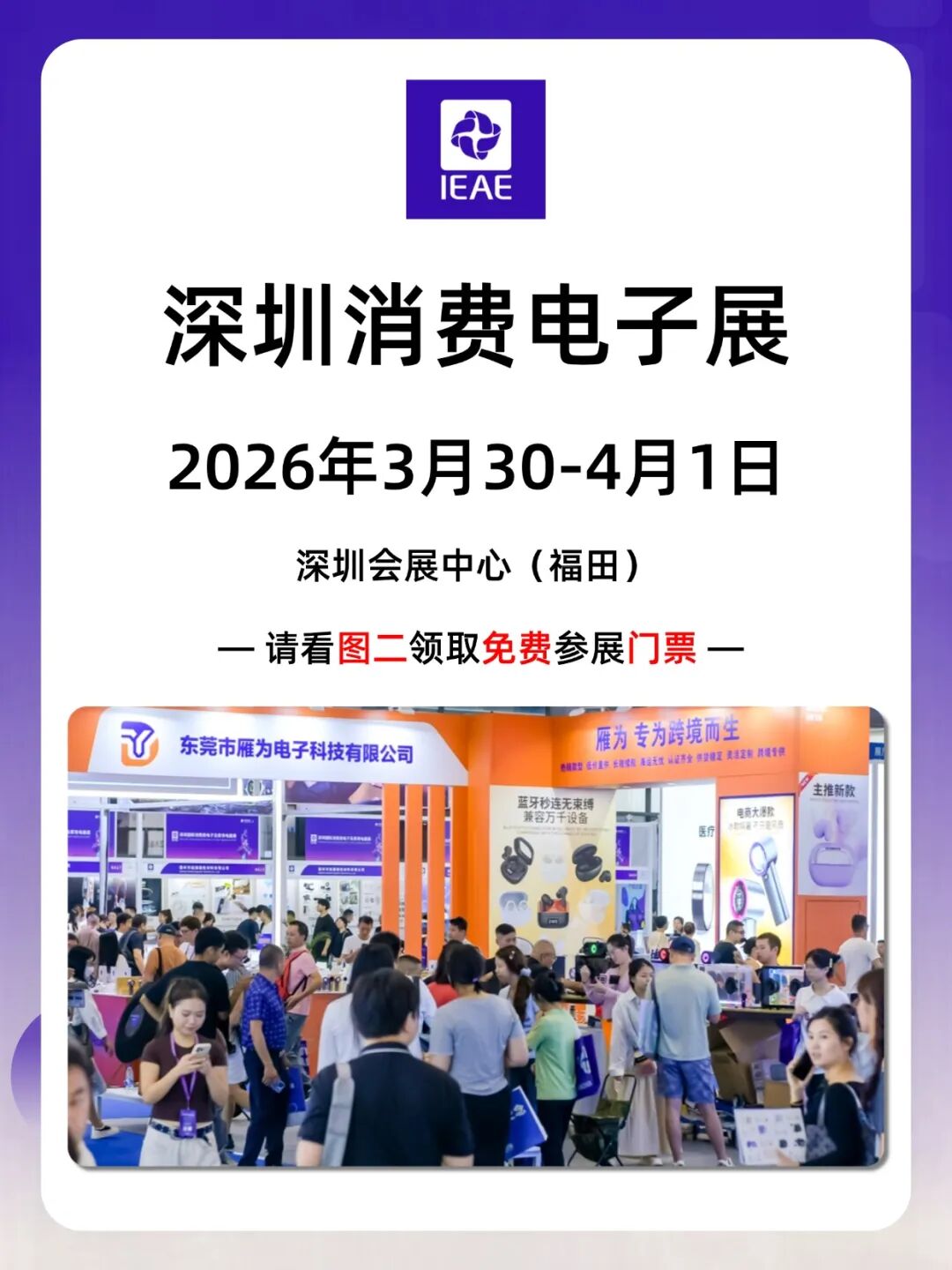 2026年3月30日至4月1日,IEAE 2026深圳国际消费类电子及家用电器展(简称:2026IEAE深圳电子展)将在深圳福田会展中心举行。在产业深度整合与技术智能化转型的关键时期,IEAE深圳电子展聚焦消费电子与家电垂直领域,汇聚尖端科技与创新方案,致力于构建供应链对接与趋势洞察并重的一站式平台,助力业界同仁把握行业脉动、整合产业资源、开拓发展新局。