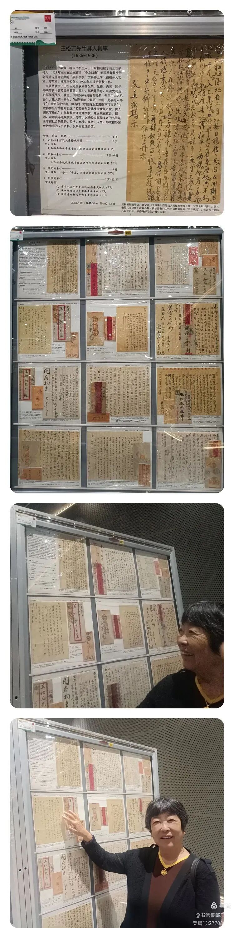 山东烟台姜涛展出《王松五先生其人其事(1925–1926)》,一框“闯关东”书信真实还原了清末民初北方民众背井离乡、开拓东北的艰辛历程,是移民史中不可多得的第一手资料。巧遇青岛来珠海康养老人,让她欣赏这框展品后,书信中地址原山东黄县,离她家很近,为她观看寻找到家乡的情结。