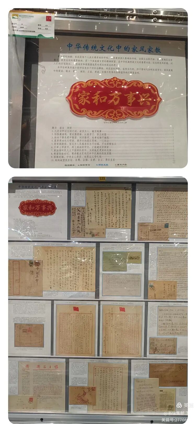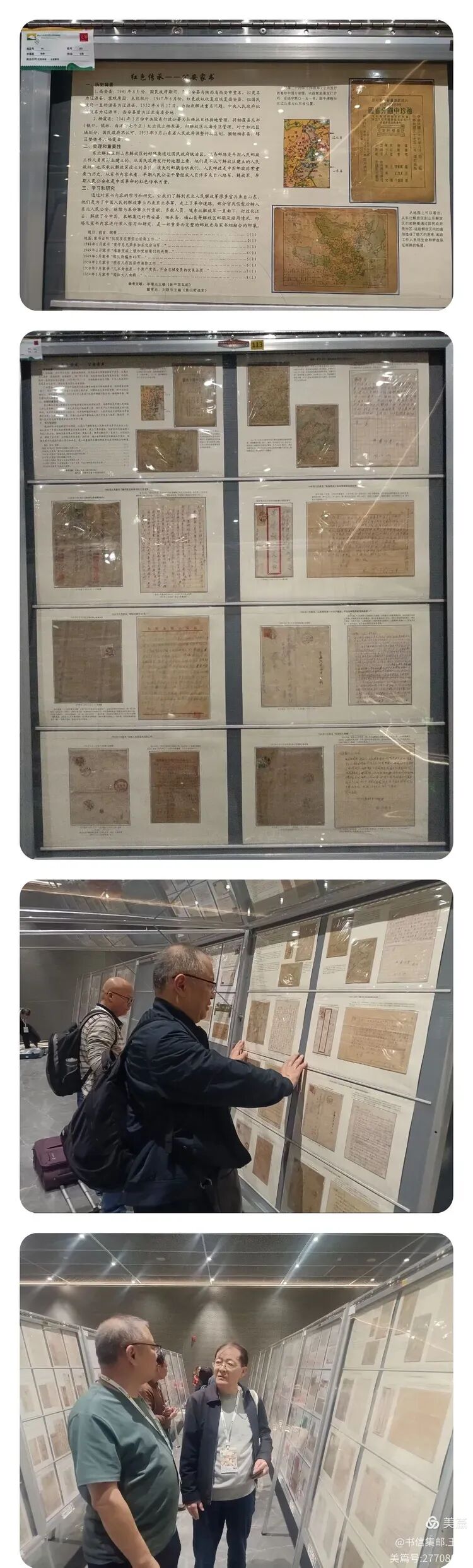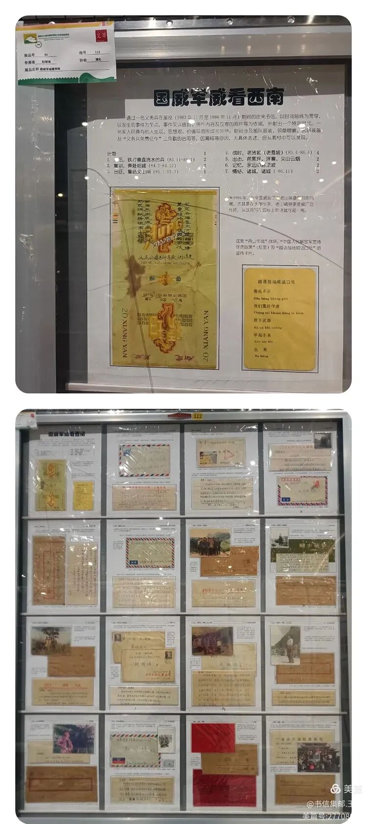 公安系统张烨(江阴)展出《红色传承——公安家书》,一框公安家书串联起几代人民警察的忠诚与奉献,纸页泛黄,初心如磐,见证人民公安为人民的铮铮誓言。作者17日晚与湖北梁耀华征集员分别展品装框中;18日上午开幕后,作者向河北省邮协秘书长常乐介绍展品中公安书信的特点,他的介绍被珠海媒体记者采采录。