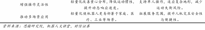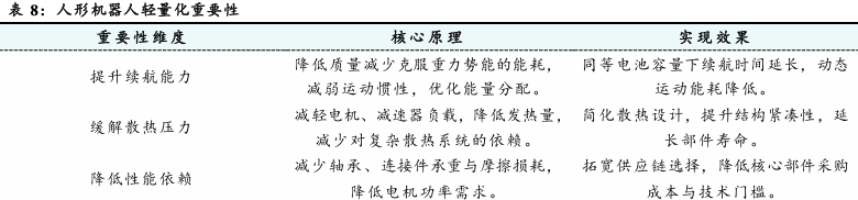 人形机器人轻量化重要性显著,是提升其实际性能的核心因素。