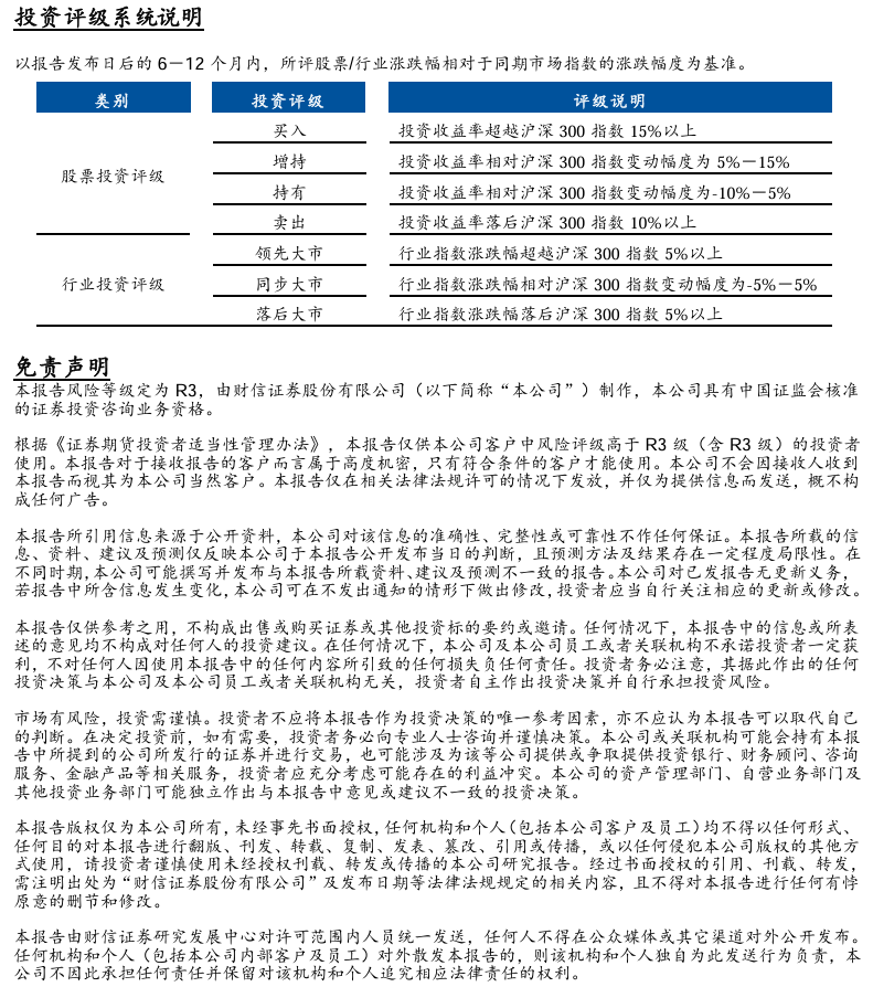 财信证券研究发展中心分为宏观策略、综合金融、大制造、大消费、大周期和TMT等研究团队,研究领域涵盖市场策略、行业研究、公司研究,以及基金、债券研究等,已基本完成A股主要行业及重点上市公司的全覆盖。研究报告除自有研究业务平台及微信公众号外,授权同花顺、Wind、东方财富、红网、讯兔科技、湖南日报、中国证券报和朝阳永续刊载或转发。未经授权刊载或转载的,财信证券将追究其相应的法律责任。