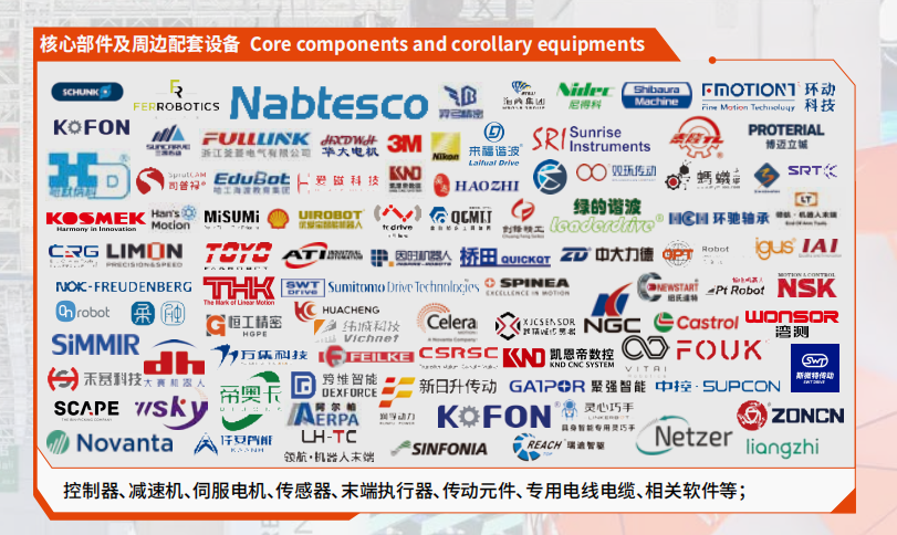 关键产品:控制器、减速机、伺服电机、传感器、末端执行器、传动元件(THK、NSK 等品牌同款类型)、专用电线电缆、机器人专用软件等;