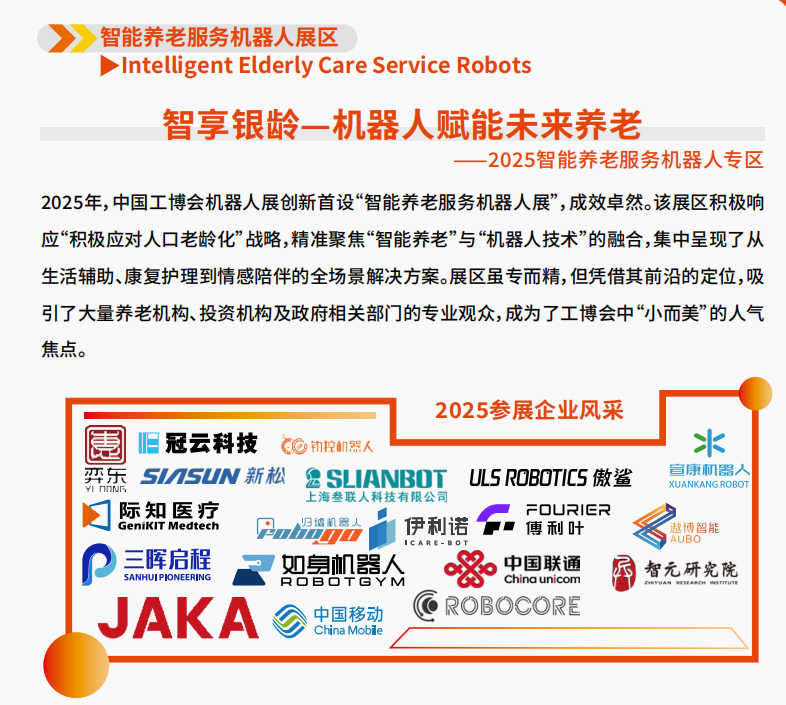 智能养老服务机器人专区:响应 “积极应对人口老龄化” 国家战略,聚焦生活辅助、康复护理、情感陪伴等全场景解决方案,吸引养老机构、投资机构及政府相关部门精准对接,成为 “小而美” 的高潜力赛道焦点。