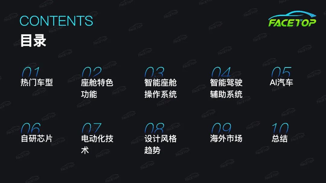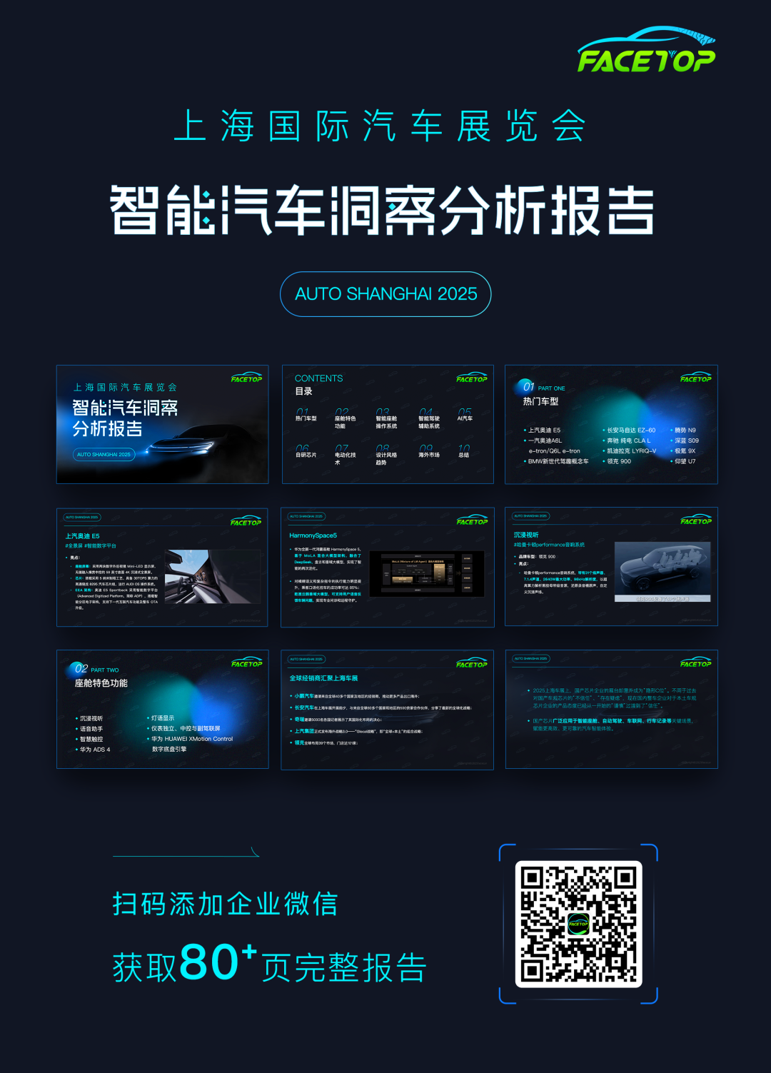 本报告由facetop针对2025上海车展,进行内容模块洞察分析,包含但不限于: