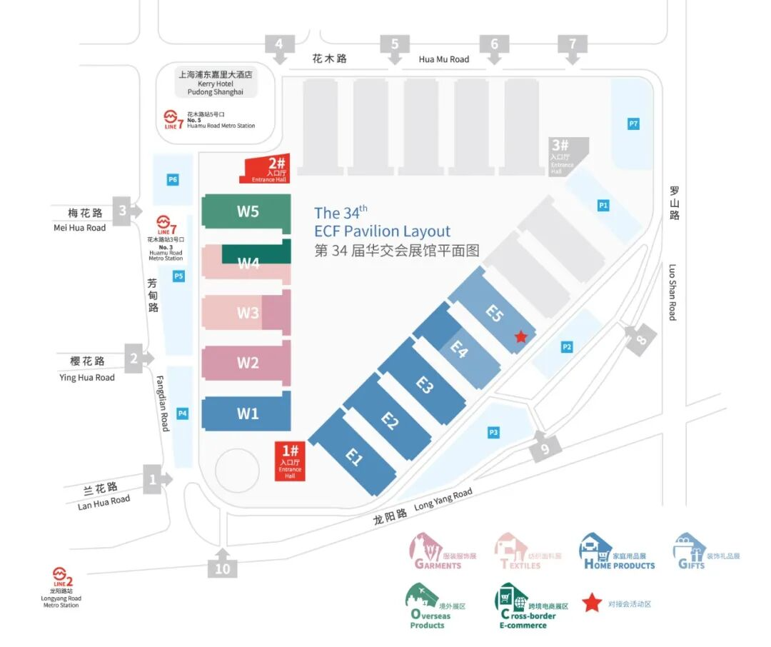2)搭乘2号线至龙阳路站,步行约10分钟至1号入口大厅入场(近E1馆)。
