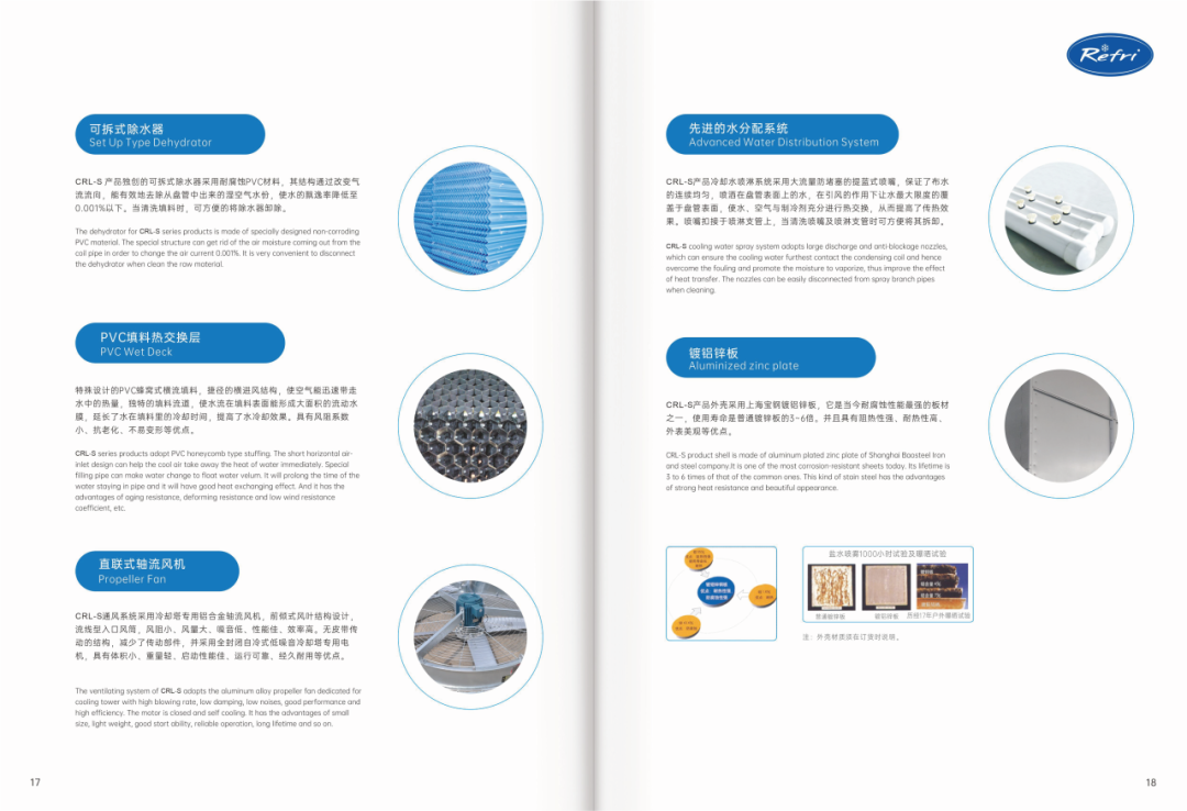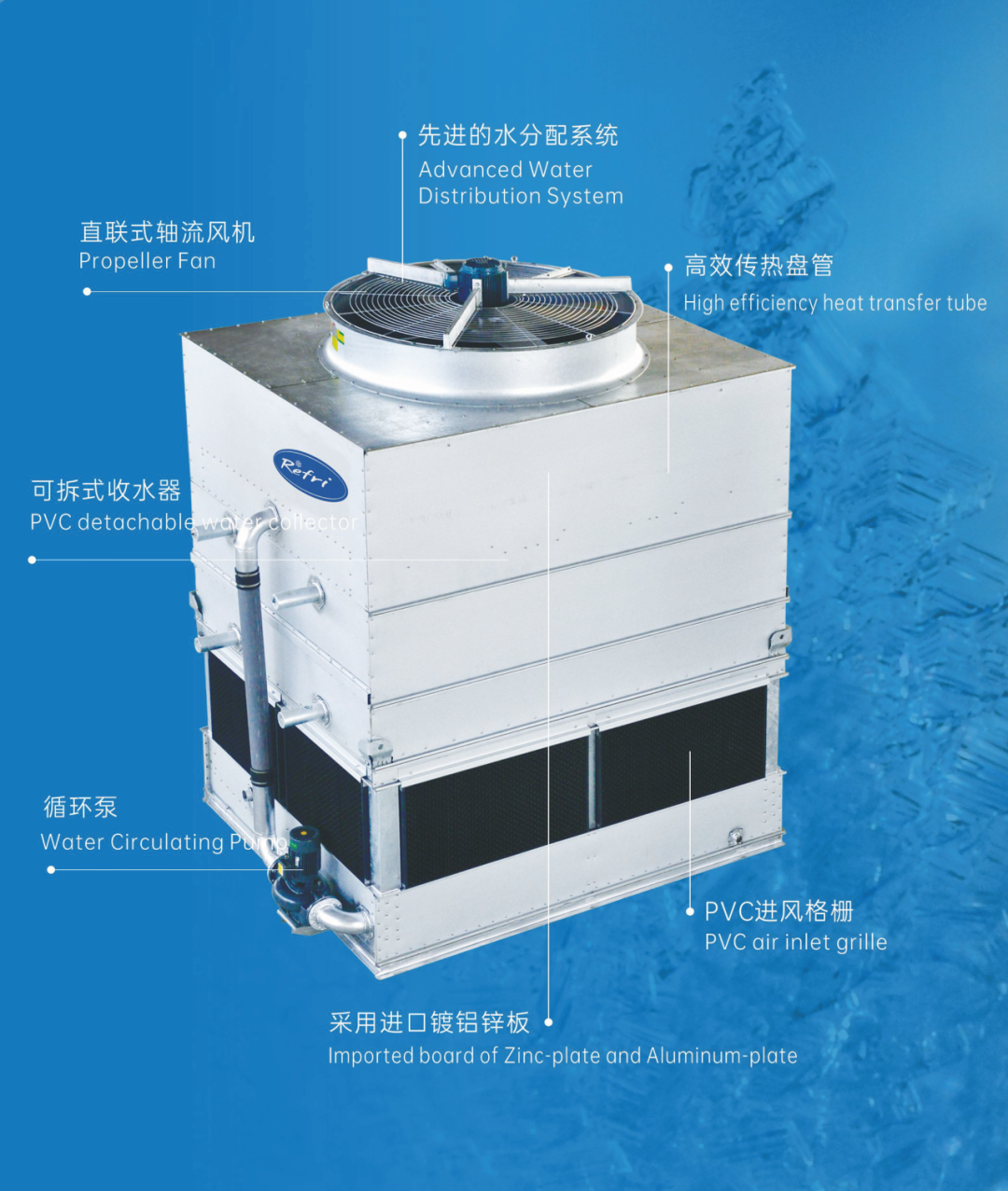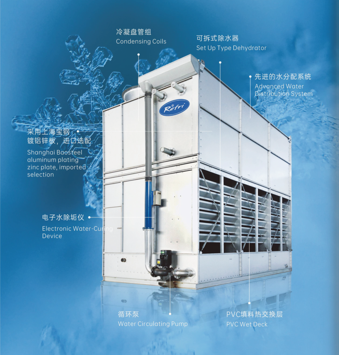 江苏莱福瑞传热科技有限公司,地处山清水秀风景优美的国家 AAAA 级旅游宜兴区,临近342省道、锡宜高速道口,环境优美,交通便利。公司占地面积26000平方,员工150人其中本科以上学历的科技人员8名、工程师5名,技术人员16名,行政人员19人。公司生产设备齐全,有折、剪、冲、铣、车等大型设备15台。现公司生产的 MK 系列蒸发式冷凝器、密团 QC 系列型等冷却塔,单台流量从 5m/h~800m/h达上千多种规格,是国内定点生产蒸发冷凝器及密闭式冷却塔的专业化公司,从事研发制冷设备、设计、制造、销售为一体服务管理体系的企业。充分收吸国内外先进技术,紧密依托专业设计研究院、高等院校合作,不断完善提升产品高品质、在行业中创出企业的品牌和信誉。