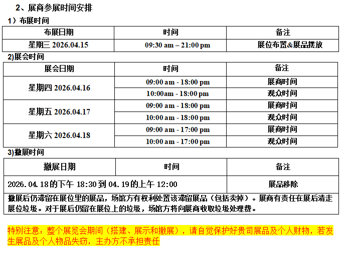 展会时间安排