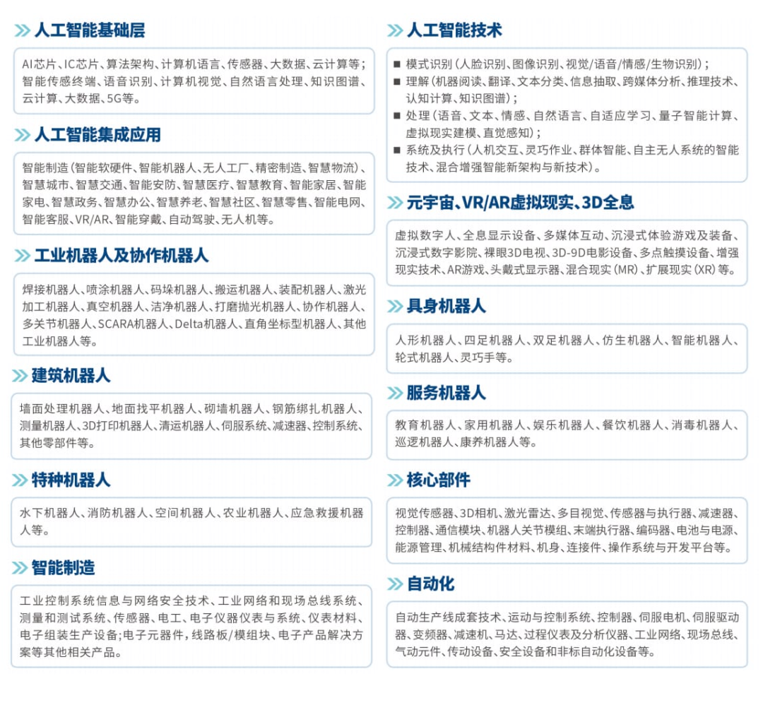 涵盖 AI 芯片、IC 芯片、算法架构、计算机语言、传感器、大数据、云计算等。