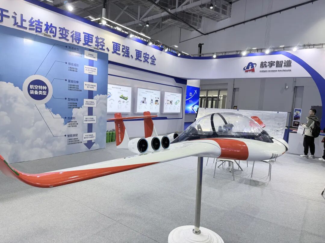 航宇智造正在展示亚太地区规模最大的飞机蒙皮生产线解决方案。该生产线采用自主研发的800T纵横一体蒙皮拉伸机等核心设备,实现了蒙皮制造的国产化替代。目前,项目一期已形成月产16架份、年产192架份航空蒙皮的生产能力,产品覆盖空客A220、A320及国产大飞机C919、C929等多个机型的关键蒙皮制造全工序。