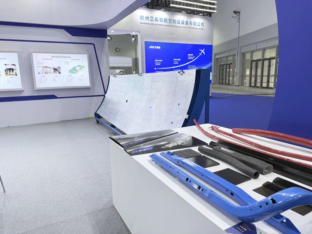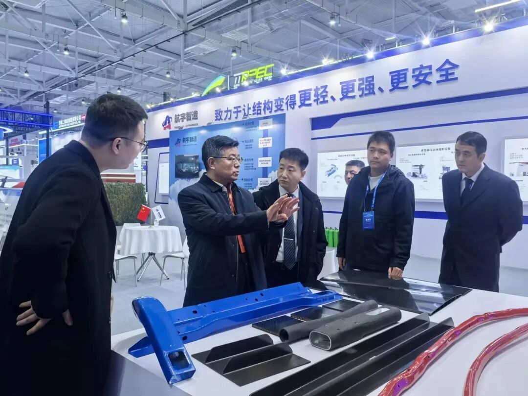 展台上,航宇智造正在展示自主研发的"超高强车身管梁热气胀成形技术" 。该技术通过施加70MPa超高压气体、950℃材料加热,完美实现了极高的产品合格率和15%以上的减重比例。这项创新技术不仅应用于航空发动机和火箭发动机的封闭截面管梁结构制造,也已在汽车制造领域取得成功,获得多家主流主机厂的高度认可。