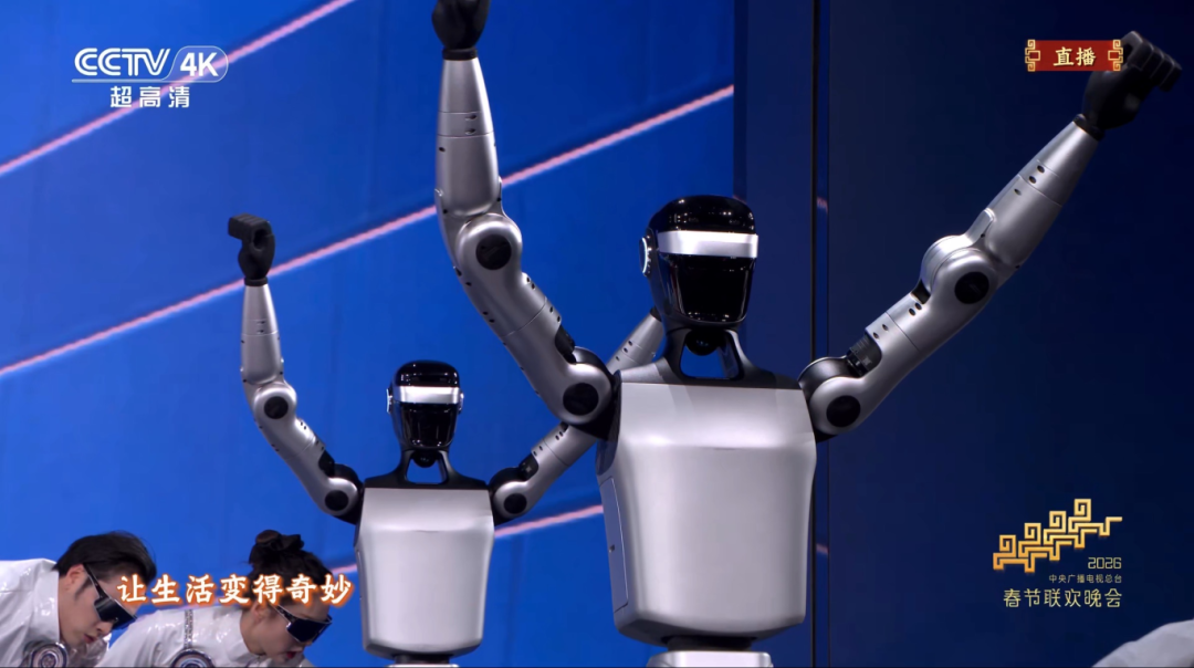 春晚节目《武BOT》中,宇树科技机器人与真人演员同台献上了一场精彩的“武林竞技”,不光翻跟头、跑跳空翻落地稳稳当当,还可手持长棍、双节棍、长剑等进行器械表演。其采用的机器人H2搭载自研全身运动控制算法,配备激光雷达与仿生视觉系统,可实现360度环境感知,进一步验证了其运动控制、规模化制造与场景应用能力。