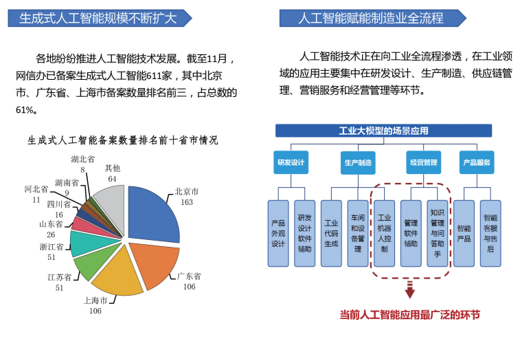 一是新领域新赛道场景加速新兴技术大规模产业化进程。以新一代智能终端、智能体为载体的高价值新应用新场景加快拓展,催生智能工厂、自主调度、无人配送、智慧农场等一批高成长性新产业新赛道。二是行业“人工智能+”技术创新将由试验探索走向规模化应用;三是数字产业集群梯度培育将深入探索。