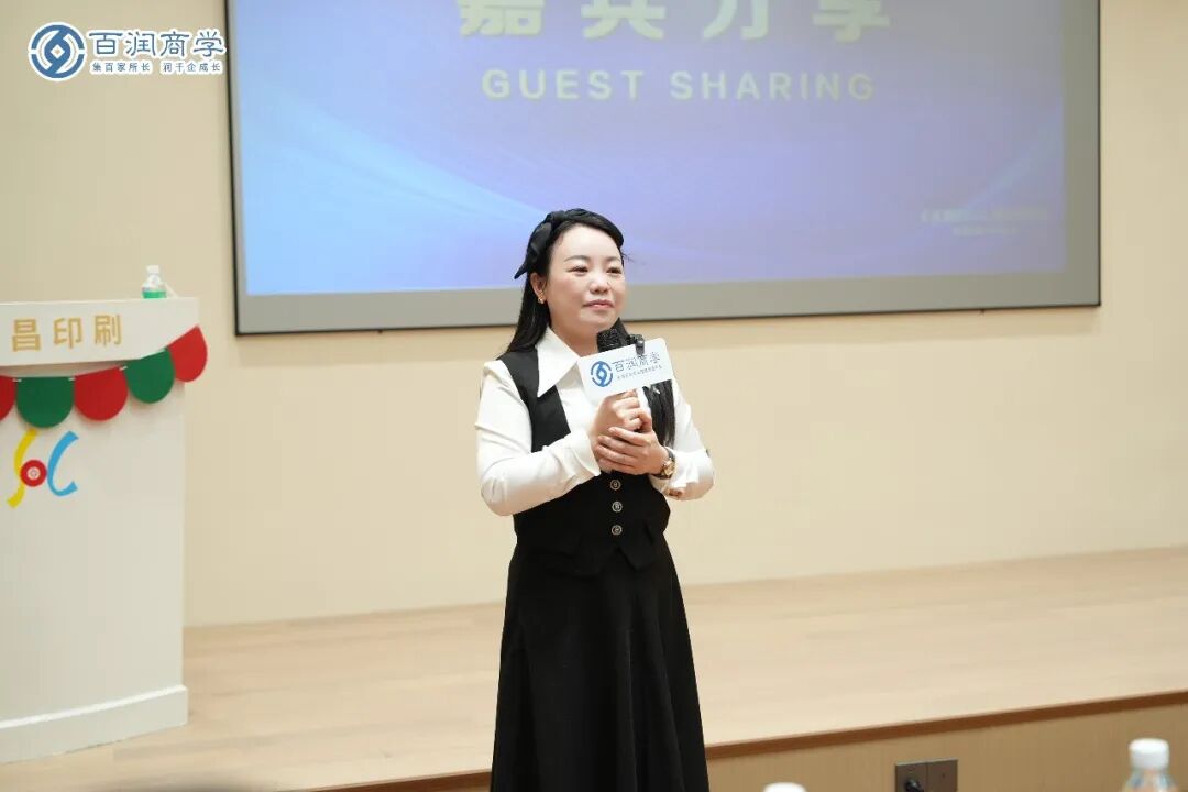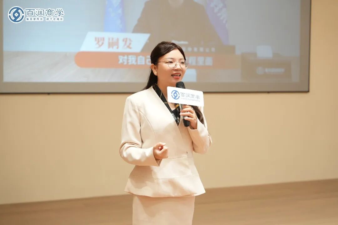 在感悟分享环节,现场氛围高涨。宇博电子总经理林亚萍也是百润商学私董会第1期同侪上台,分享学习收获。表示这次学习让自己重新审视企业组织打造和人才管理理念,认识到物质与精神激励并用,才能充分调动员工积极性。这些收获也为他们后续优化企业人才管理策略提供了清晰方向 。