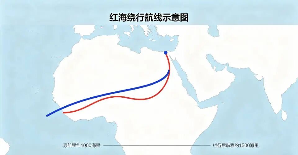 红海危机常态化,运力持续承压:截至2026年4月,红海局势依然紧张,苏伊士运河通行率低,大部分前往欧洲的船只仍需绕行好望角。这不仅导致航程增加10-14天,更使得船舶周转效率大幅下降,有效运力被严重稀释。