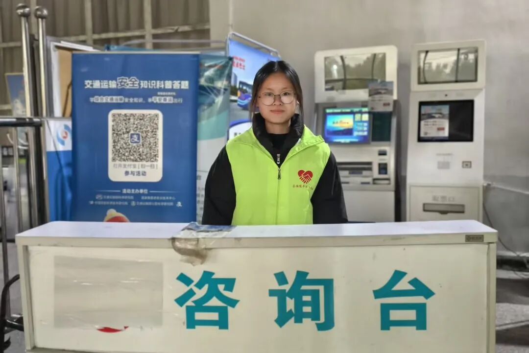 2026年寒假,在抚州市乐安县汽车站咨询台担任志愿者期间,该同学收获了宝贵的成长与感悟。她的主要工作是为旅客解答疑问、指引方向、协助购票与检票,看似简单的咨询服务,实则需要足够的耐心、细心与责任心。面对旅客提出的车次查询、候车区域、行李寄存等各类问题,她都尽力用清晰易懂的语言耐心解答,确保大家得到准确帮助。