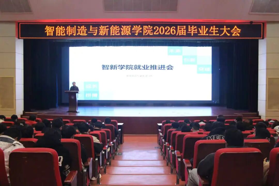 智能制造与新能源学院召开“明细毕业节点 规划职场前路”2026届毕业生大会为帮助2026届毕业生精准把握毕业关键节点,明晰学业要求与就业方向。近日,智能制造与新能源学院于教二报告厅隆重召开2026届毕业生大会。学院院长助理门静、王丽丽及全体毕业班学生齐聚一堂,共同为毕业季的学业收尾与职业规划筑牢基础,大会由毕业班辅导员史晓薇主持。